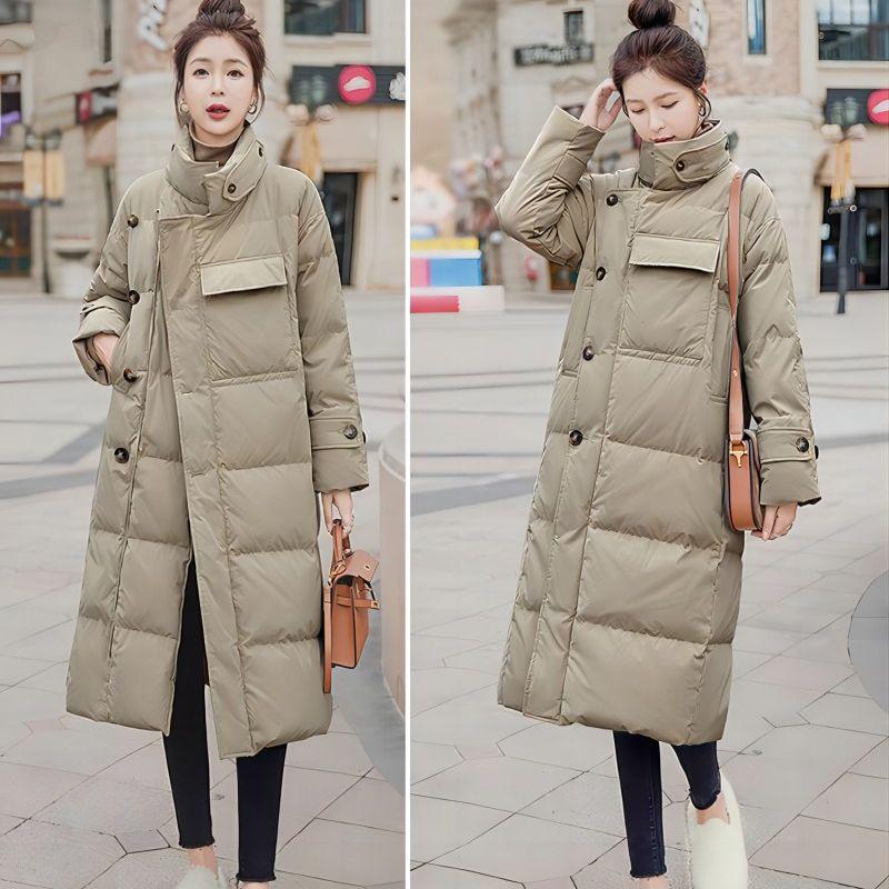 Женская зимняя хлопковая куртка длиной до колена, корейский стиль, утолщенная и модная модель свободного кроя.