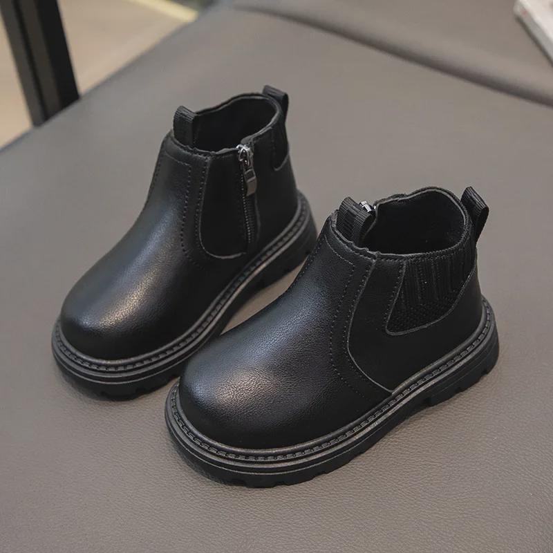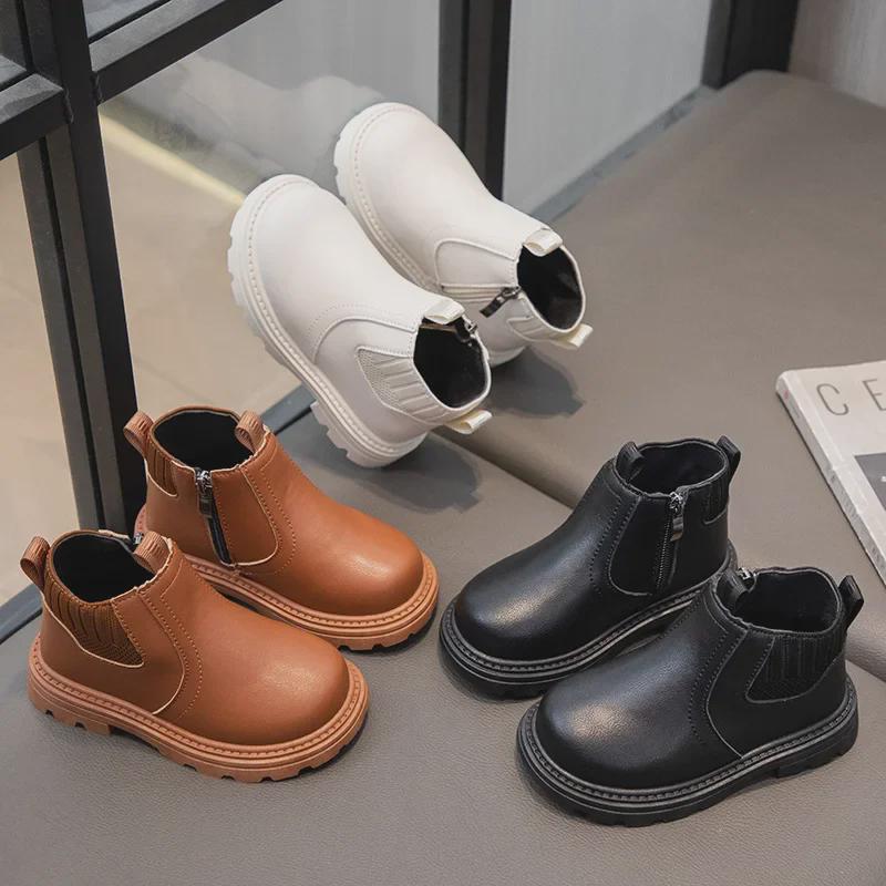 «Новые осенне-зимние кожаные ботинки Martin с мягкой подошвой для детей — стильные и универсальные короткие ботинки для мальчиков и девочек»