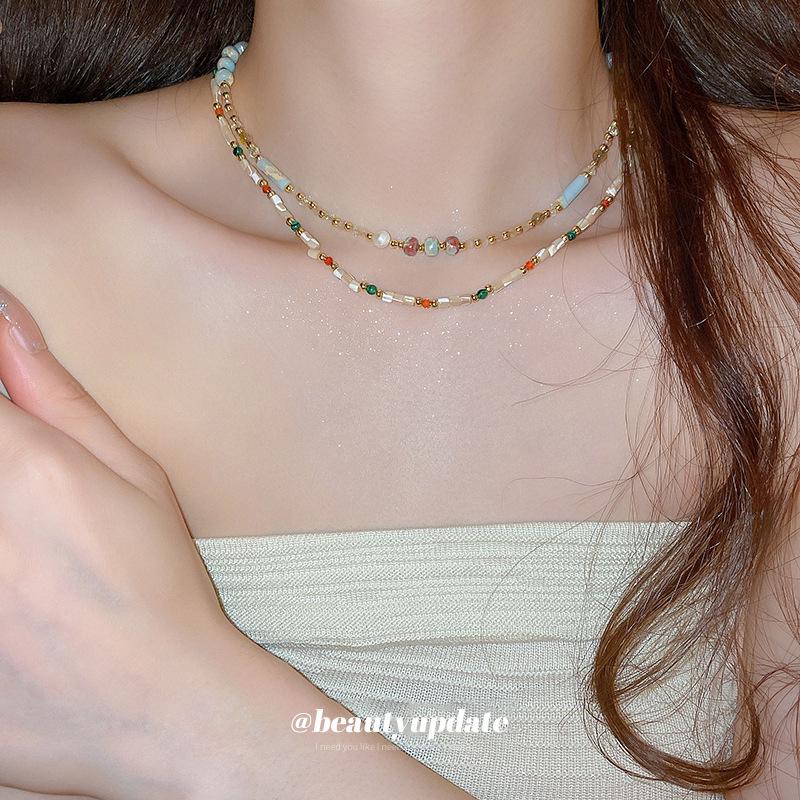 Ожерелье из жемчужных бусин «Дофамин»: Стильная цилиндрическая ключичная цепочка, универсальная и модная для женщин