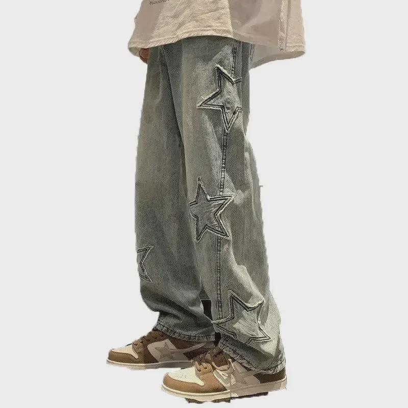 Джинсы унисекс с пятиконечной звездой: Модные свободные прямые брюки широкого кроя для осенней моды