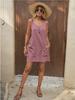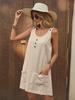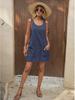 Платье в европейском и американском стиле из хлопка и льна, однотонное, без рукавов, с карманами, на подтяжках и регулируемыми бретелями на пуговицах
