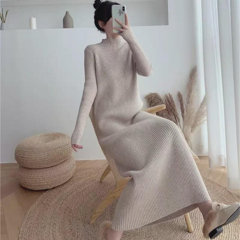 Женское платье-свитер в корейском стиле из толстой вязки с полуводолазкой 2024 года на осень/зиму — купить товар онлайн с бесплатной доставкой по всему миру!