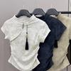 Женская летняя китайская футболка с коротким рукавом на пуговицах Qianyu