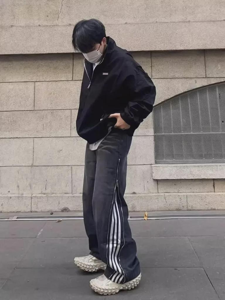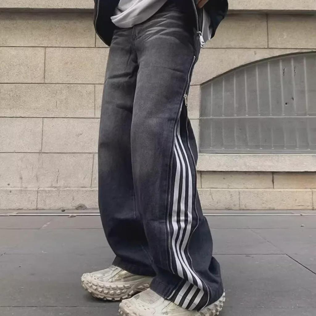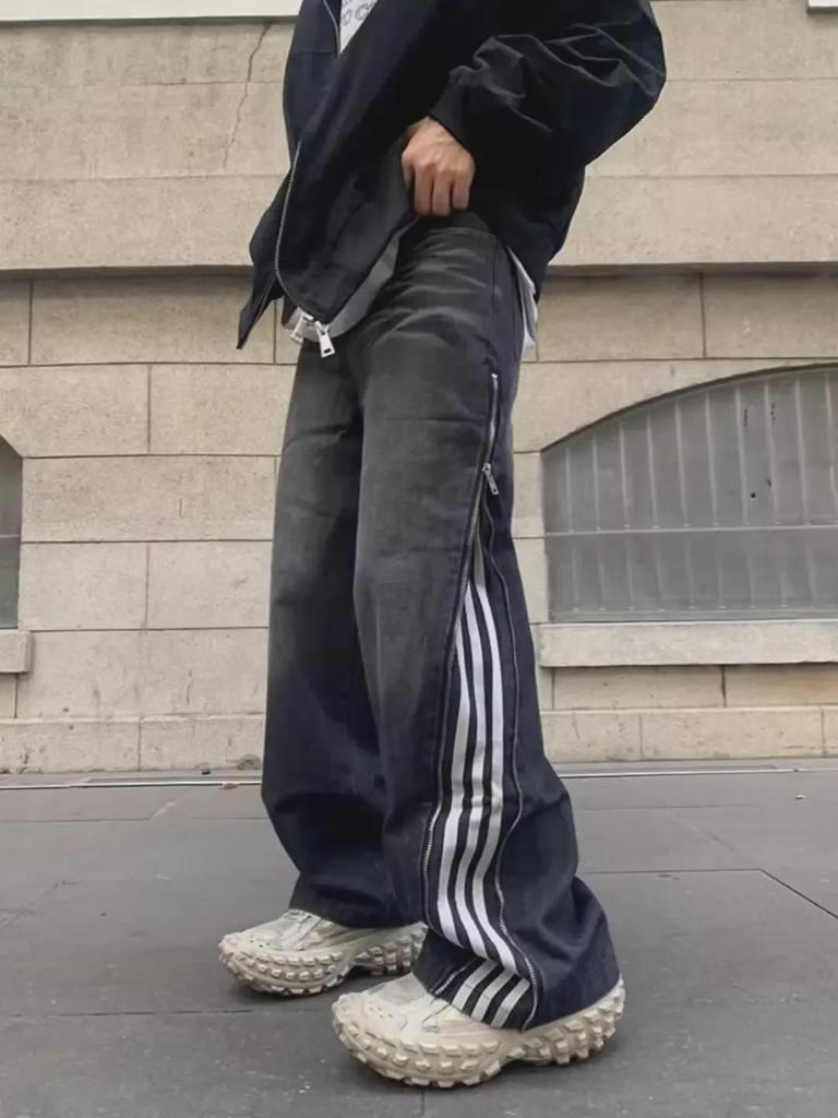 Мужские черные полосатые ретро-джинсы с тремя полосками, свободные, прямые – весна/осень, уличный стиль