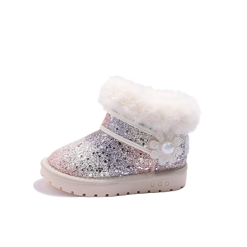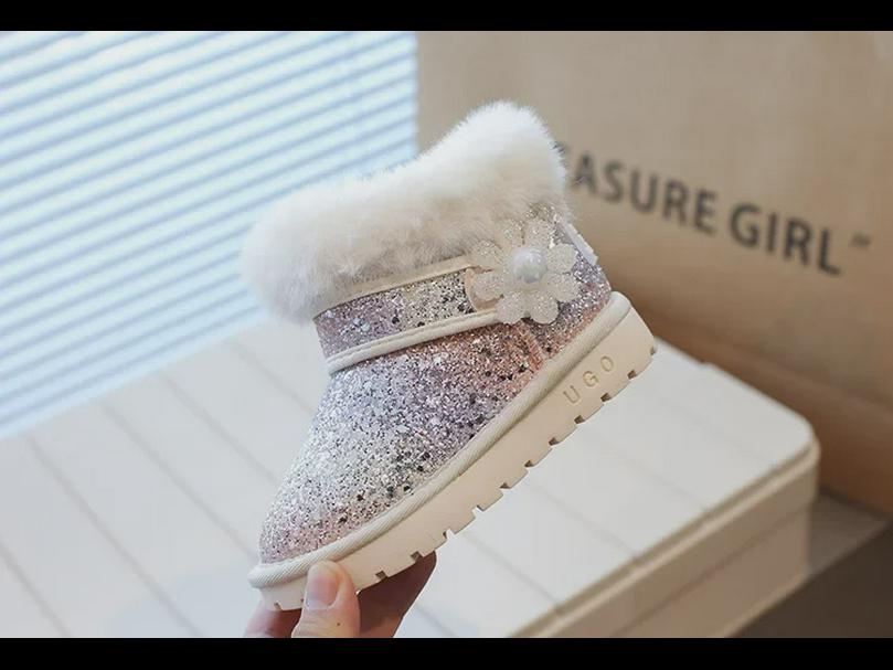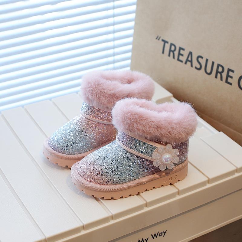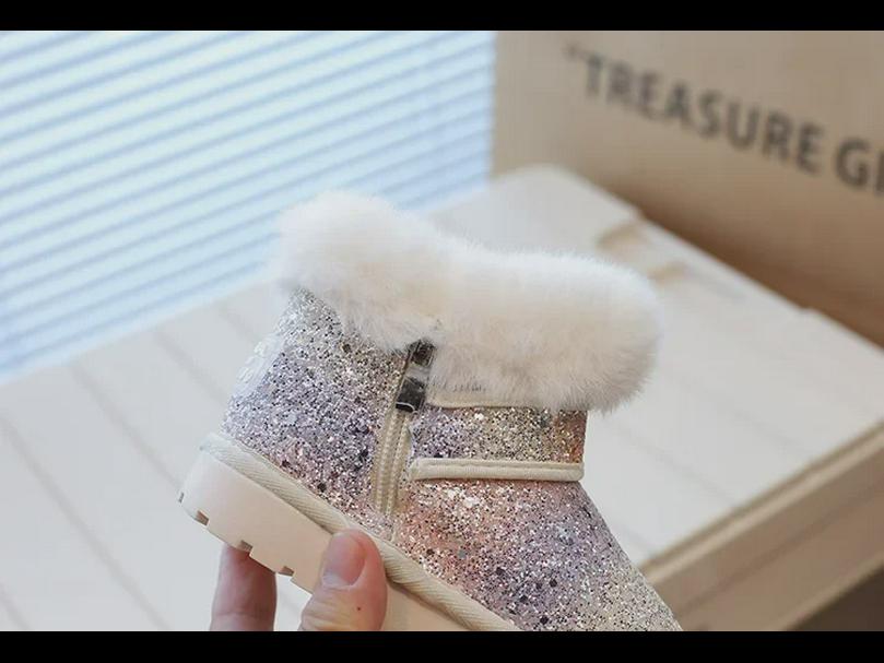 Зимние снегоступы для девочек 2023 года: Новая кожа и мех, плюшевый бархат, большой размер, хлопковый стиль для детей