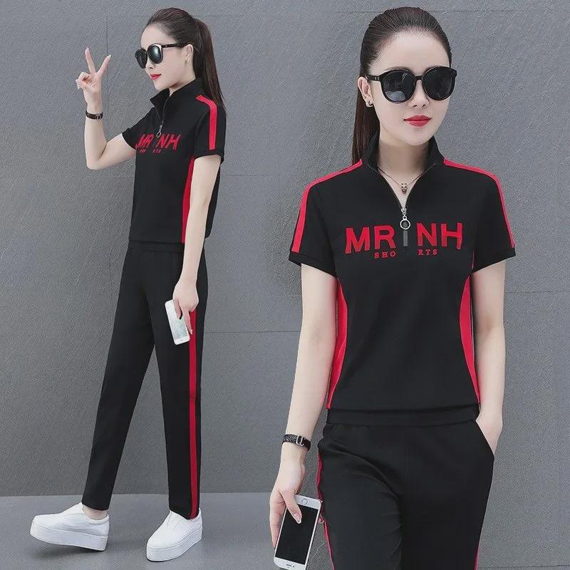 Женские облегающие спортивные костюмы в корейском стиле 2024 года — повседневный, стильный модный комплект из двух предметов