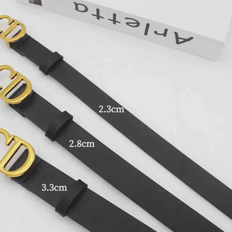 Ремень унисекс из черного полиуретана с тонкой пряжкой CD - европейский и американский стиль