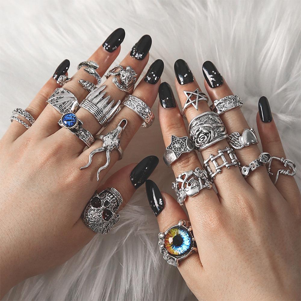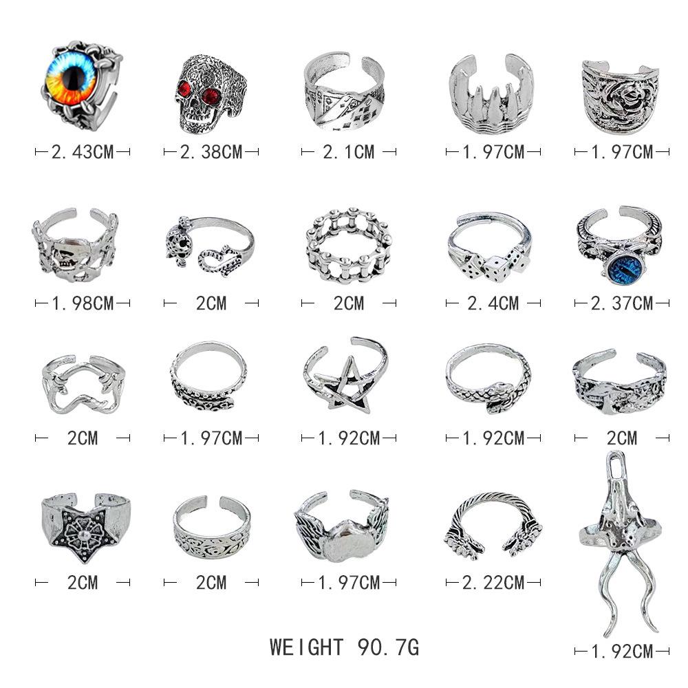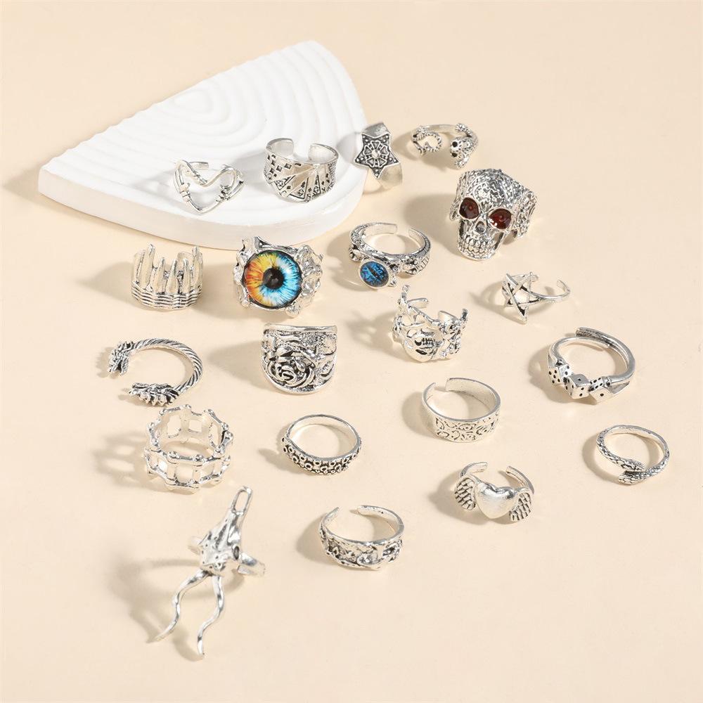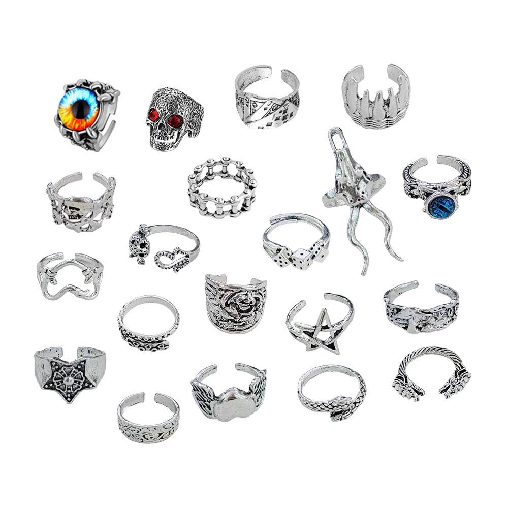 Кольца в стиле ретро с изображением черепа в виде животного и демонического глаза: Набор из 20 предметов в стиле панк-преувеличения
