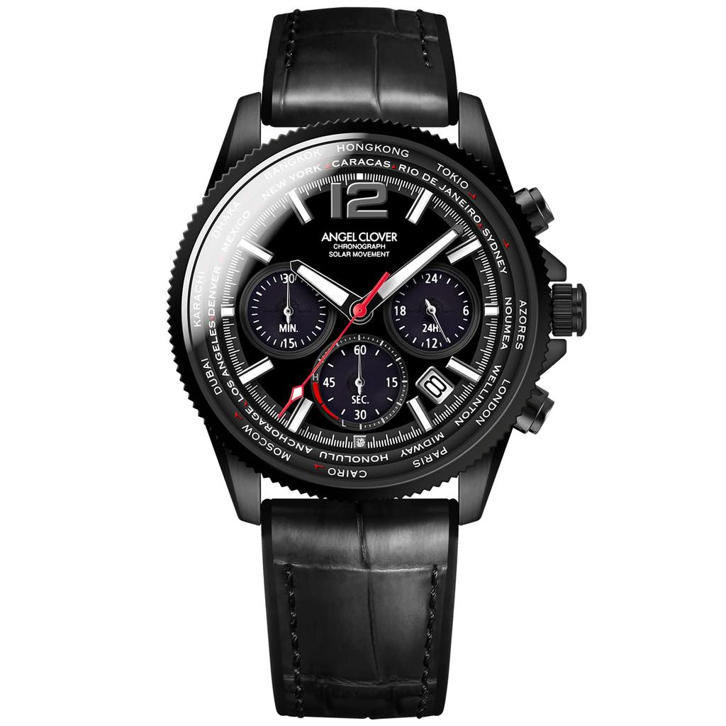 Часы Angel Clover Mondo Solar с черным циферблатом из нержавеющей стали Calf Solar Quartz 43MM Часы [ANGELCLOVER] Кожа/резина MOS42BBK-BK мужские