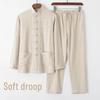 Мужской летний китайский костюм Тан из хлопка и льна: Модный наряд в стиле мандарин с пуговицами — купить товар онлайн с бесплатной доставкой до всему миру!