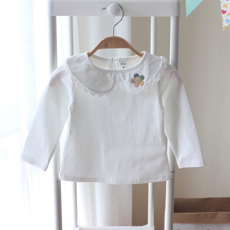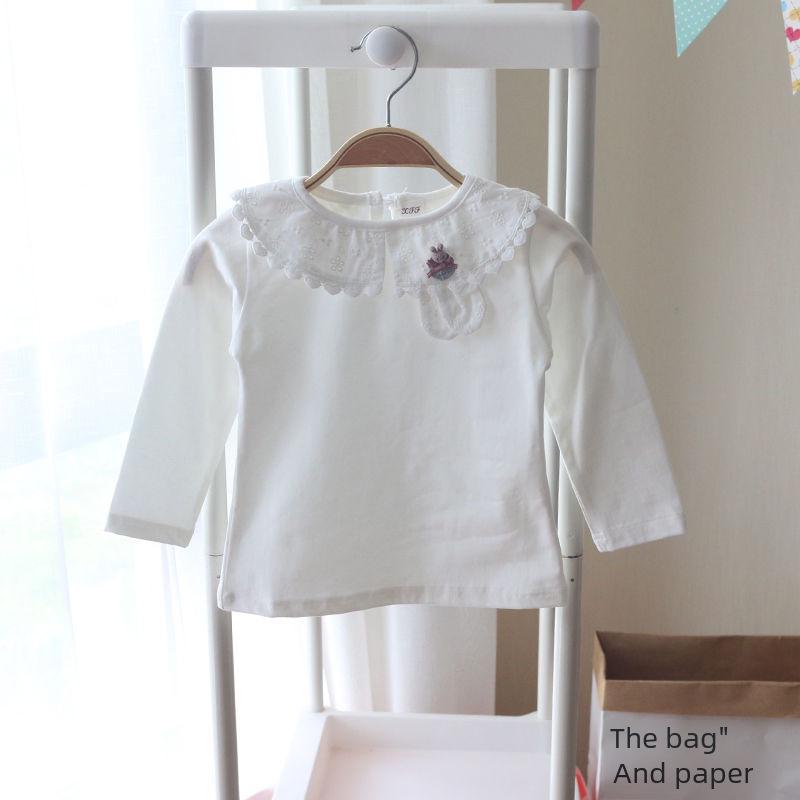 Футболка с длинными рукавами и воротником-стойкой для девочек - весенний стиль, белая, универсальный топ для детей