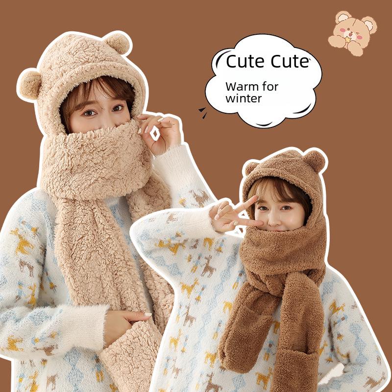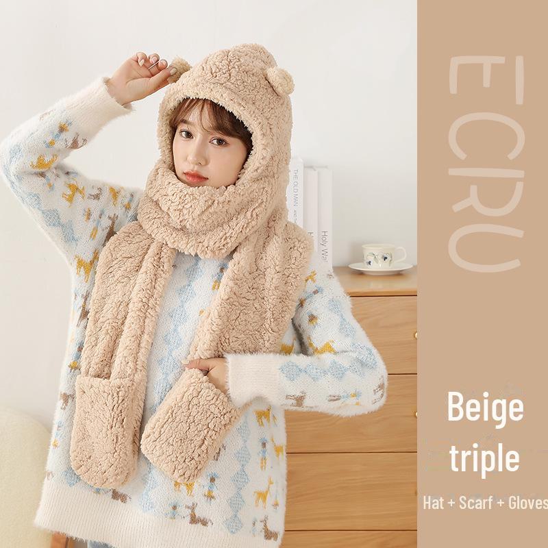 Женский зимний комплект из шапки и двух шарфов — согреет и защитит уши.