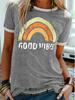 2024 Трендовая женская футболка с радужным принтом «Good Vibes» с круглым вырезом и коротким рукавом