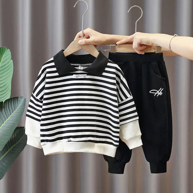 Стильный полосатый костюм-двойка для мальчиков: Свитшот и повседневные брюки на весну и осень