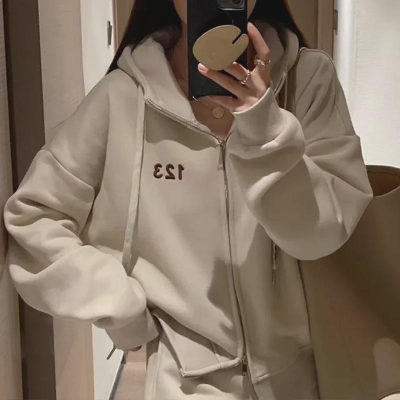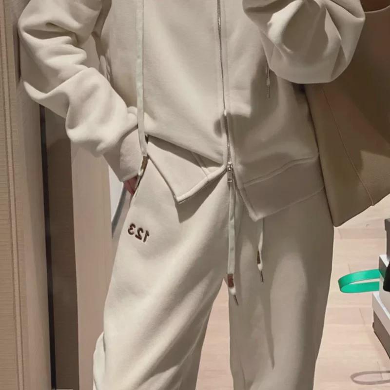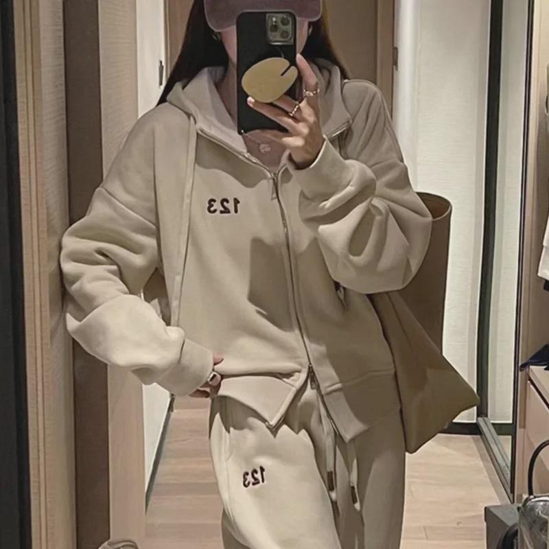 2024 Осень/Зима Высококачественная модная толстовка с капюшоном из бархата и спортивный костюм из двух частей для женщин