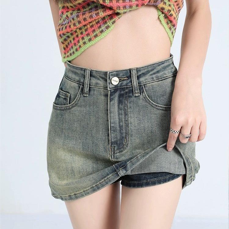Юбка-трапеция из денима с высокой талией в стиле ретро — защита от воздействия внешней среды, облегающий крой для лета — купить товар онлайн с бесплатной доставкой по всему миру!