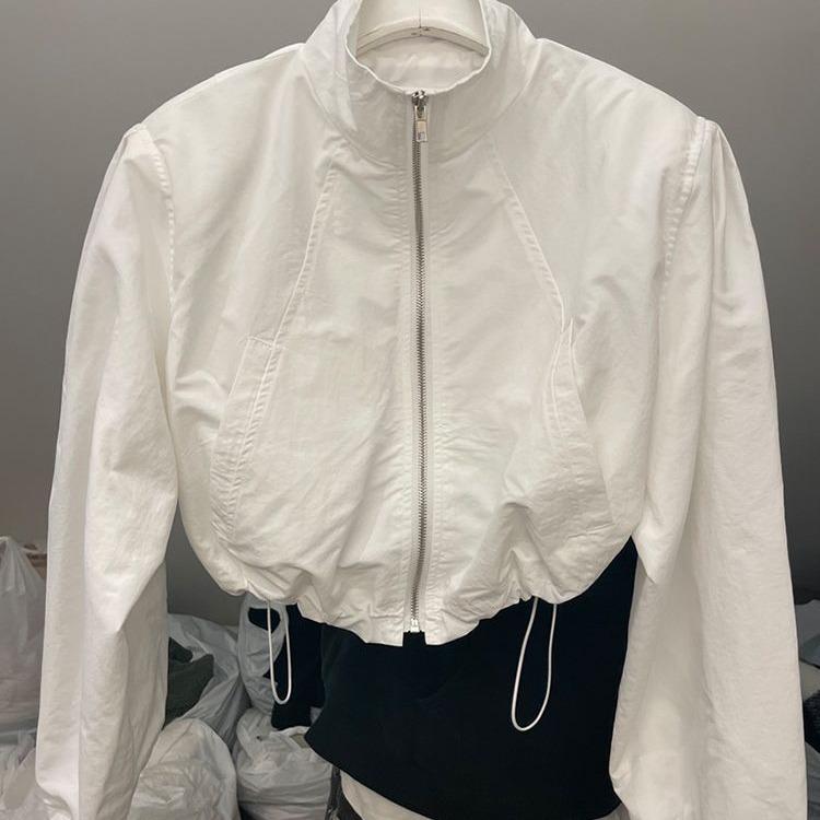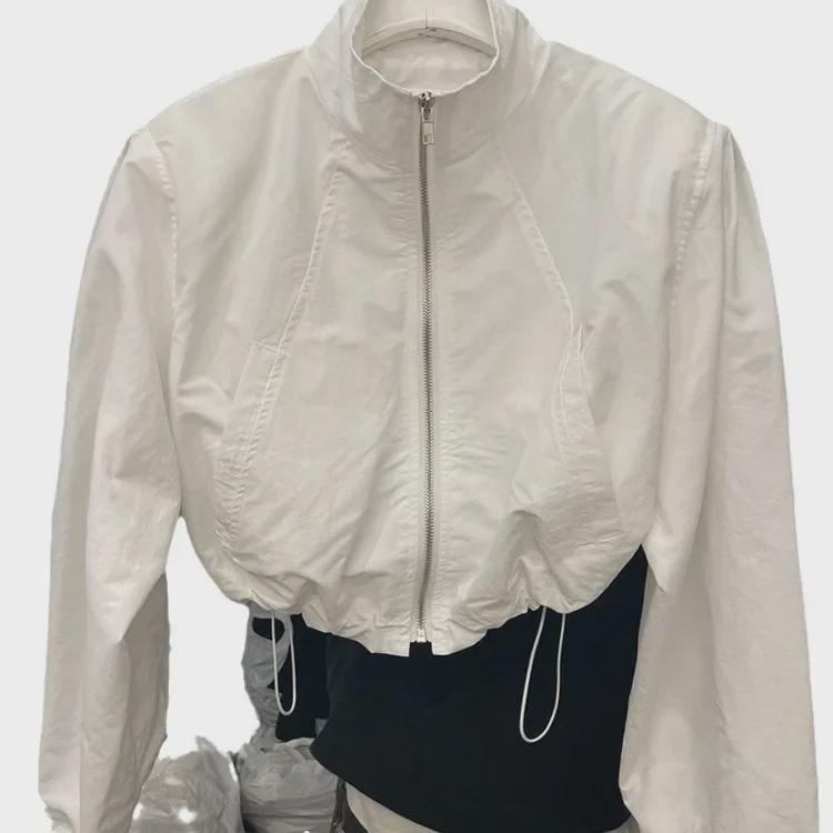 Женская модная солнцезащитная куртка с воротником-стойкой: Легкий, длинный рукав, затягивающийся шнурок по низу, застежка-молния, короткий спортивный кардиган.