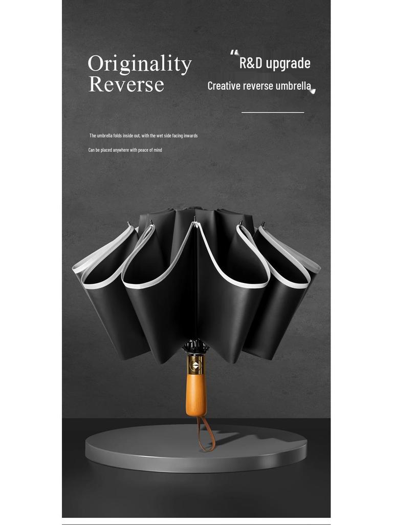 Автоматический ветрозащитный зонт: Защита от УФ-лучей, Большой складной дизайн, Деревянная ручка для солнца и дождя