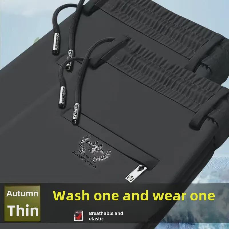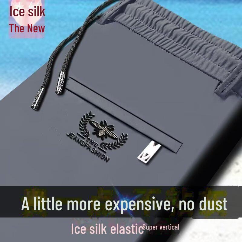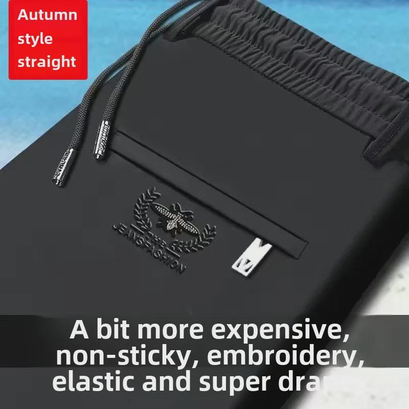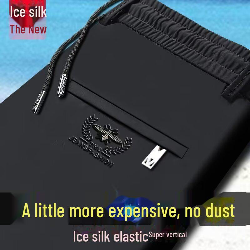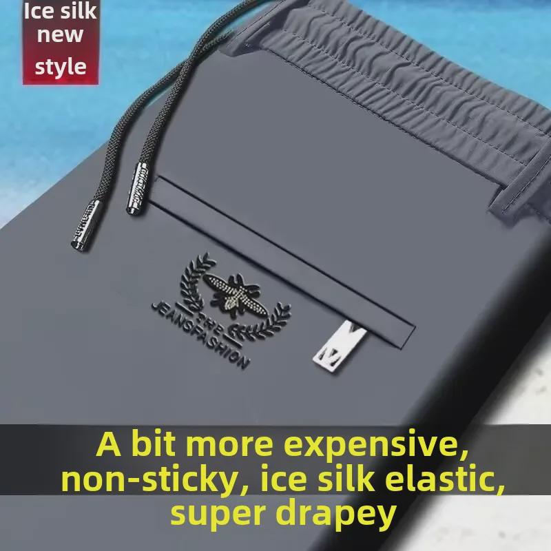 Мужские повседневные брюки Ice Silk Stretch — высокая талия, прямые, свободный крой, спортивные брюки с эластичным поясом.