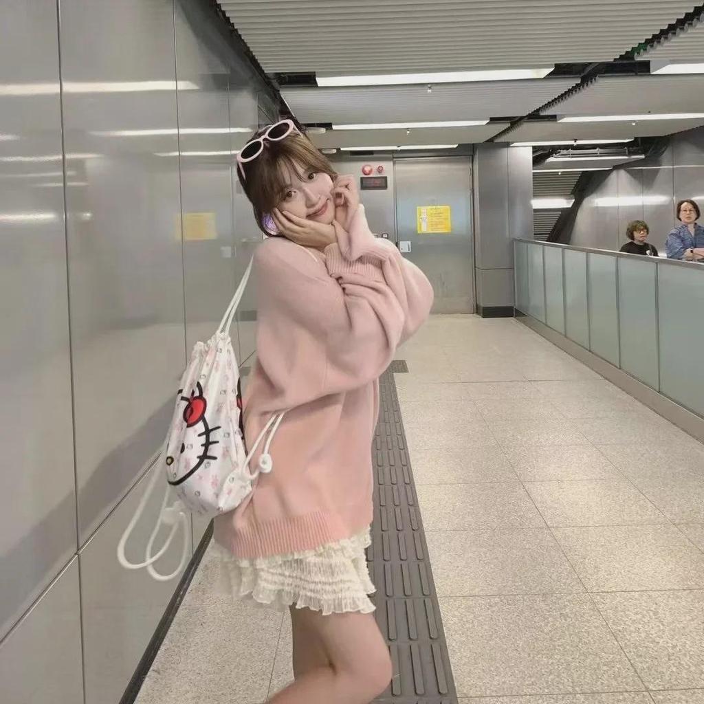 «Женский свитер свободной вязки из корейского хлопка и кашемира, ранняя осень, красный, с V-образным вырезом»