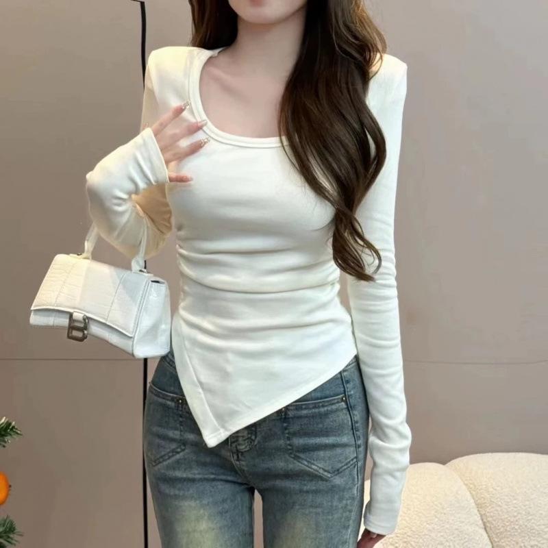 «Топ G Hot Girl с U-образным вырезом и застежкой на ключицу для женщин — весна/осень, прямые плечи, длинные рукава, облегающий крой, короткий и нестандартный».