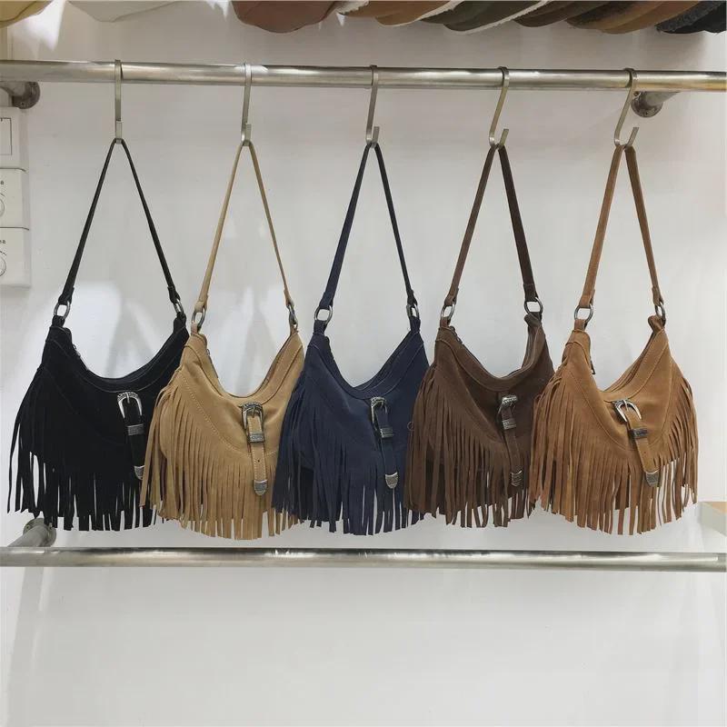 Сумка через плечо из замши с кисточками в стиле ретро 2024 года — купить товар онлайн с бесплатной доставкой по всему миру!