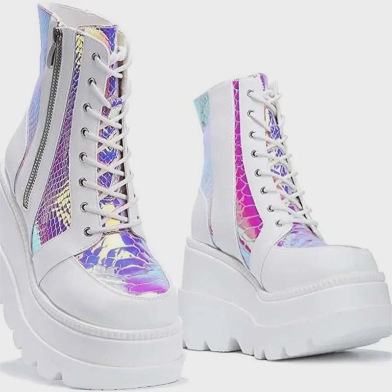 Осень/Зима 2023 Женские туфли на высокой платформе с цветными шнурками, большие размеры, европейский и американский стиль