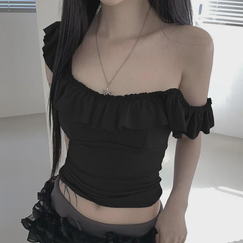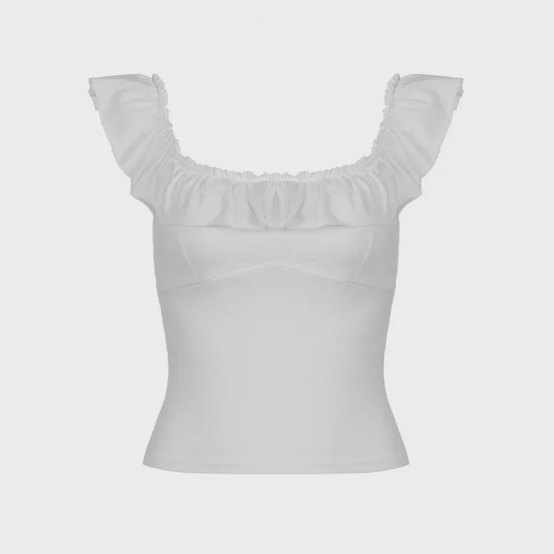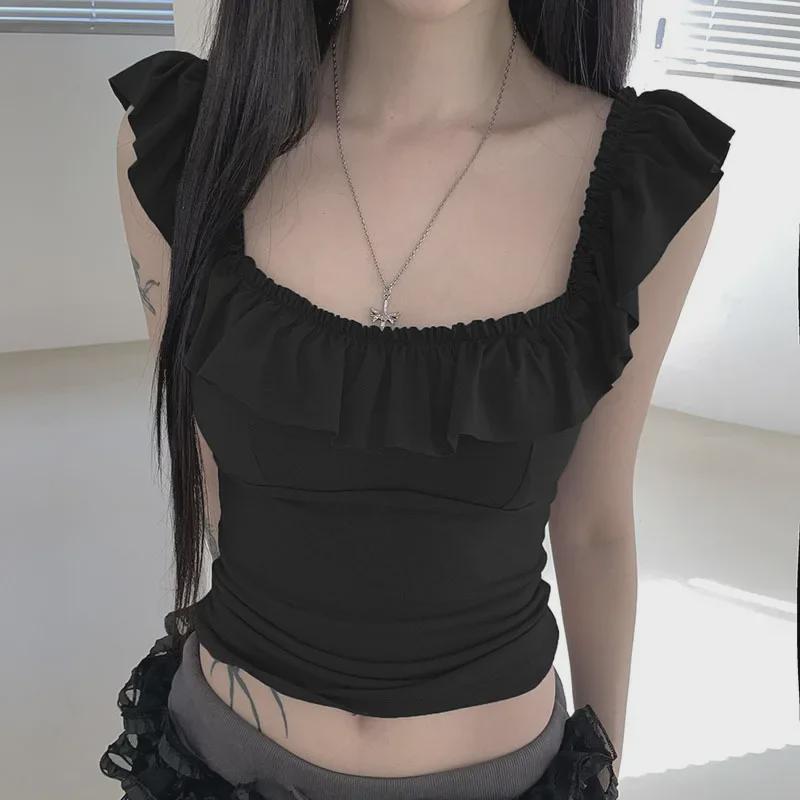 «Футболка French Chic Square Neck с оборками на рукавах, тонкая, однотонная, сексуальная, плиссированная, летняя для женщин»