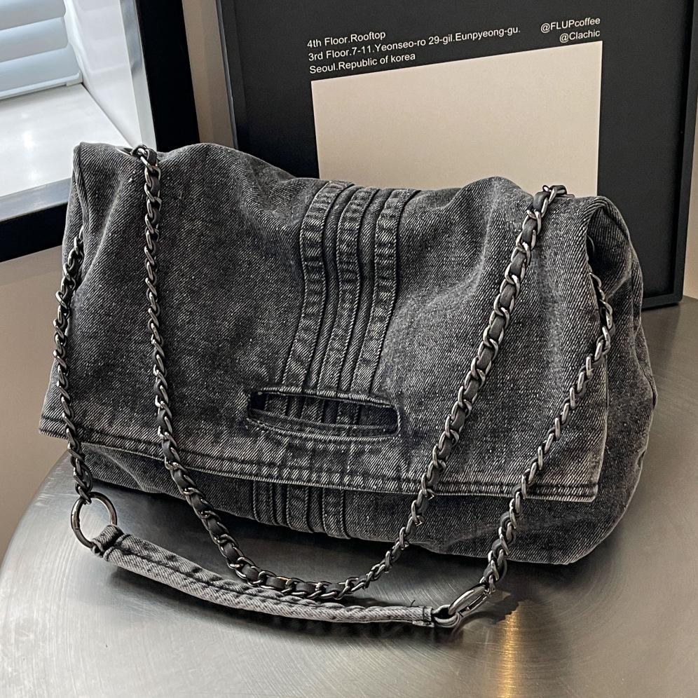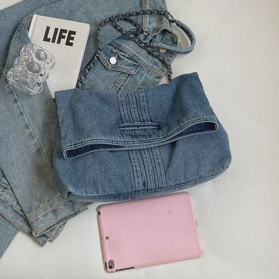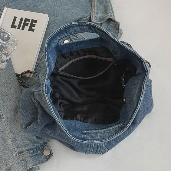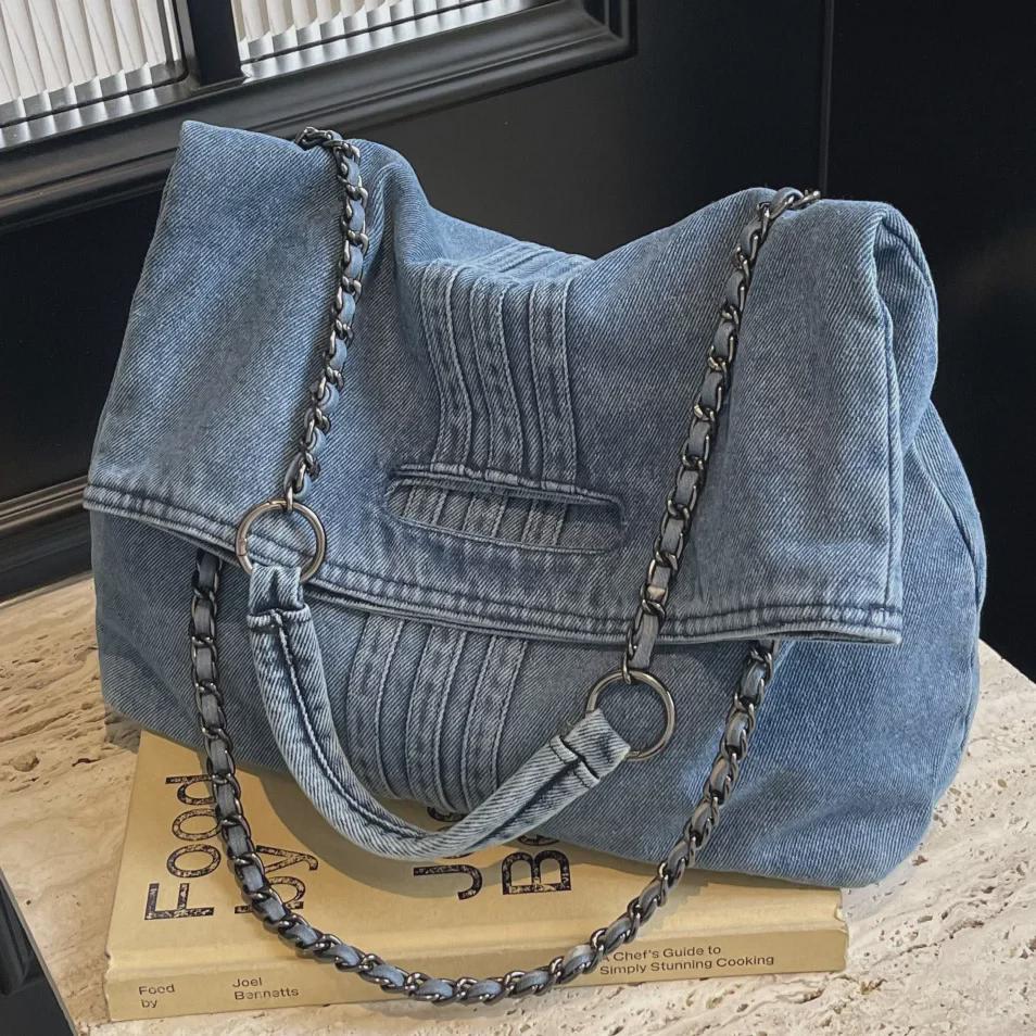 Женская сумка через плечо из стираного денима - мода 2024 года, большая вместимость, высококачественная сумка для поездок на работу