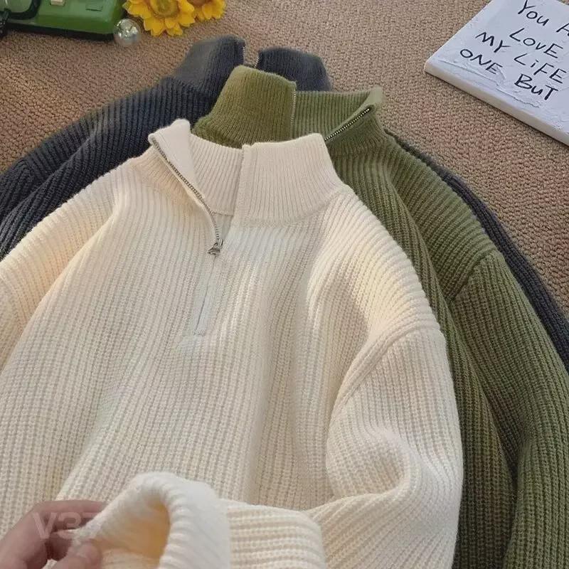 Мужской свитер-водолазка с полумолнией на осень/зиму — стиль японского городского парня, универсальный и уютный для пар — купить товар онлайн с бесплатной доставкой по всему миру!