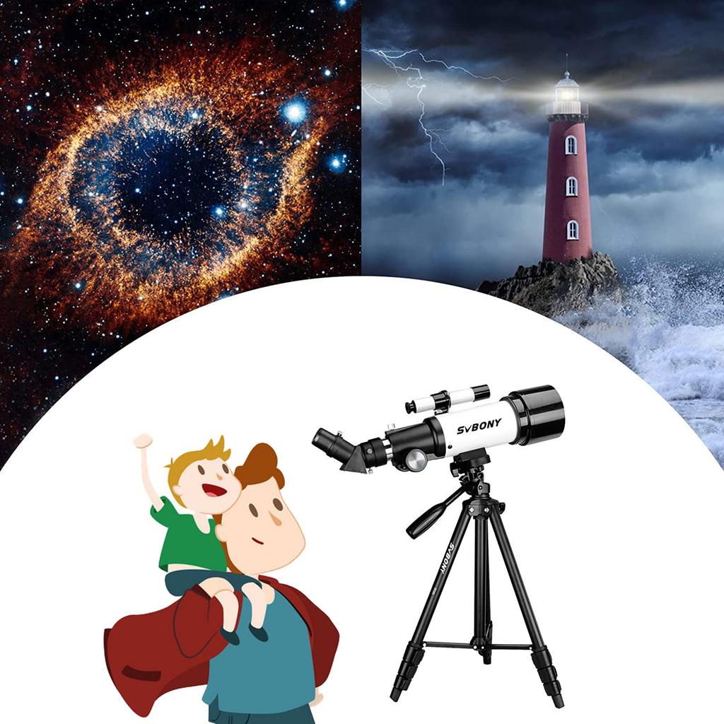 [Пригодится в различных случаях] Полезно для альпинизма, кемпинга, школьного образования, мероприятий на открытом воздухе и т. д.. Дети и любители звездного неба могут наблюдать за звездным небом на улице и делиться этим зрелищем с друзьями и семьей.. Кроме того, SV501P имеет двойное назначение: для наземных и астрономических целей.. Его также можно использовать в качестве полевого прицела.