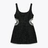 Осенне-зимнее женское платье-халтер с отделкой из искусственного жемчуга и объемным плетением без талии