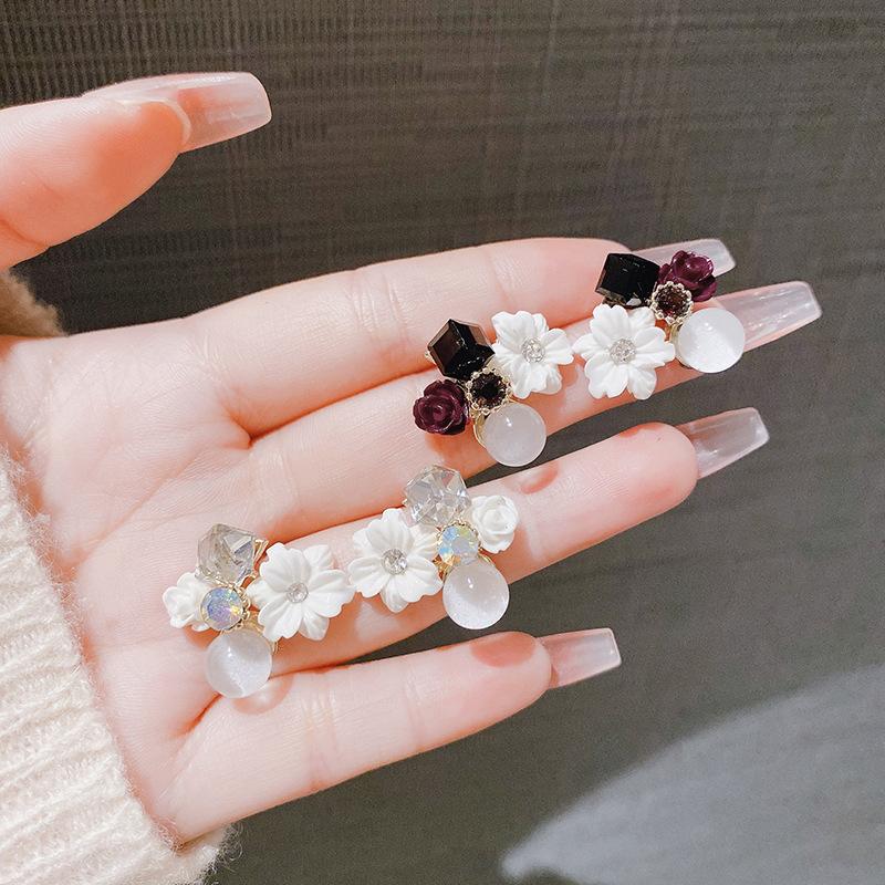 Новая тенденция белый циркон кристалл цветок опал серьги гвоздики для женщин изысканный ювелирный аксессуар рождественский подарок