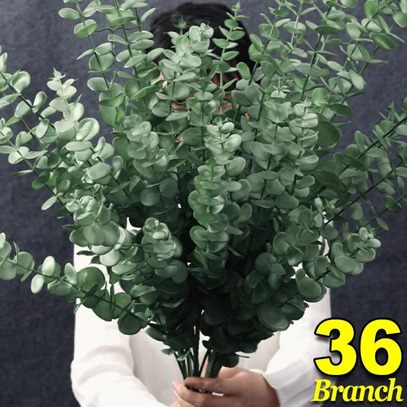 36/12 шт искусственные стебли эвкалипта зеленые листья ветки искусственные растения цветы букет для свадебной вечеринки рождественский домашний декор