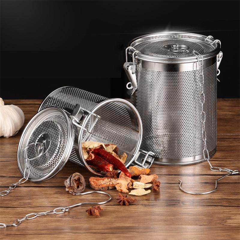 Корзина для приправ из нержавеющей стали с круглым отверстием, мелкоячеистое сито для пищевых продуктов, коробка для специй для готовки, домашний шлакоотделитель, дуршлаг для рассола, фильтр