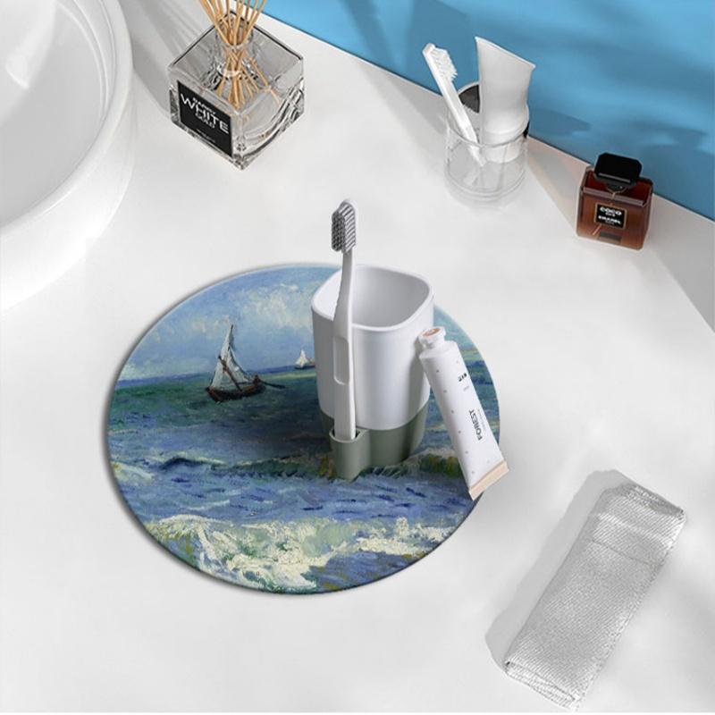 Подставки под стаканы Van Gogh Diatomite, впитывающие коврики для раковины, обеденный стол, теплоизоляция, противоскользящий коврик, креативная круглая подставка под стакан