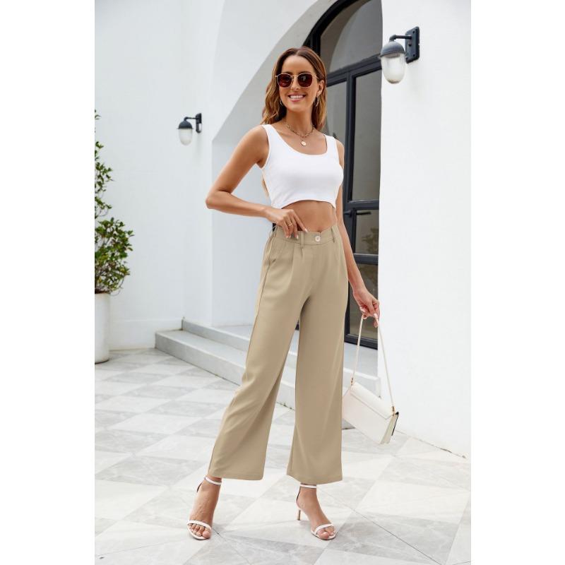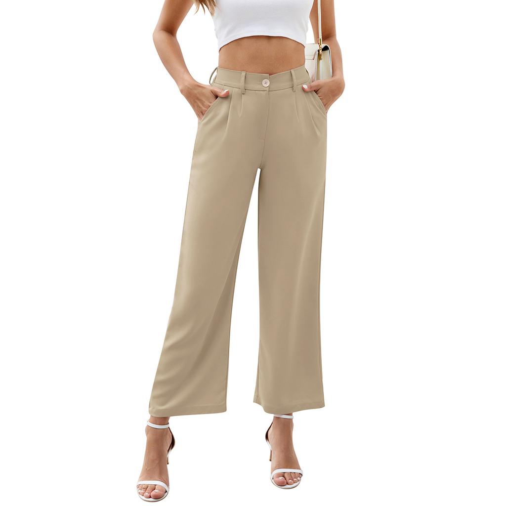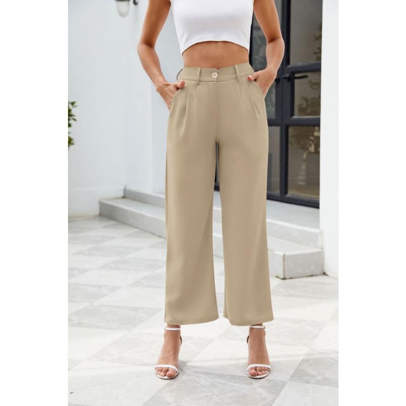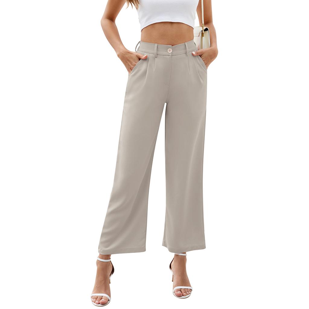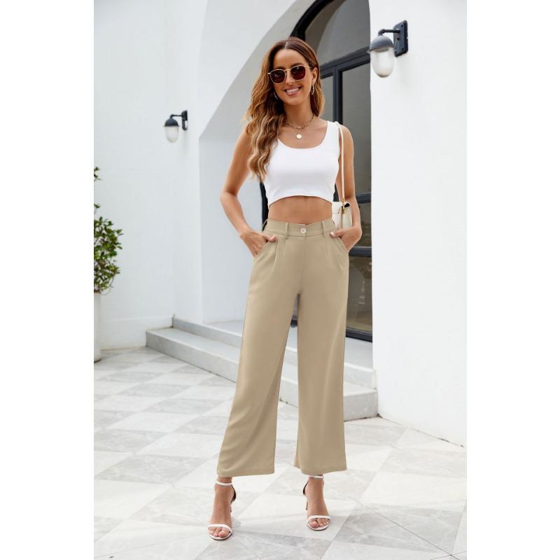 Широкие брюки для офиса, женские брюки с высокой талией и карманами