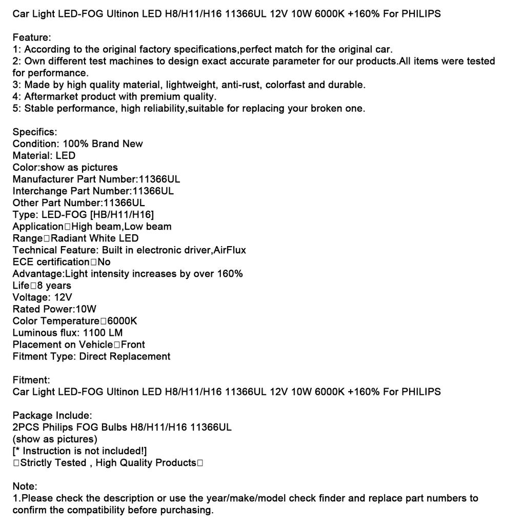 Автомобильный светодиодный противотуманный фонарь Ultinon LED H8/H11/H16 11366UL 12 В 10 Вт +160% для Philip