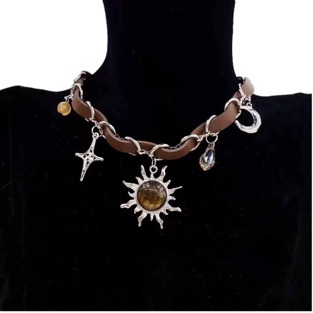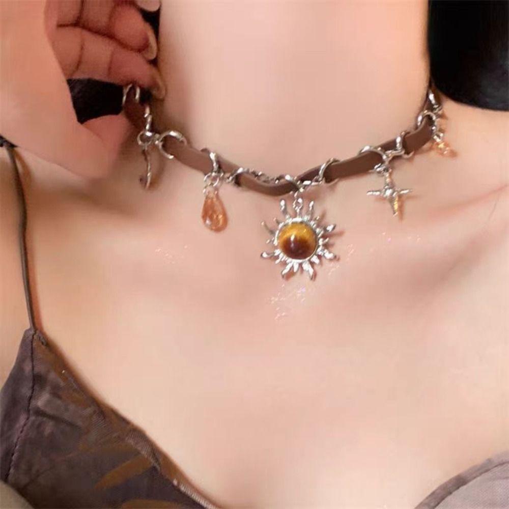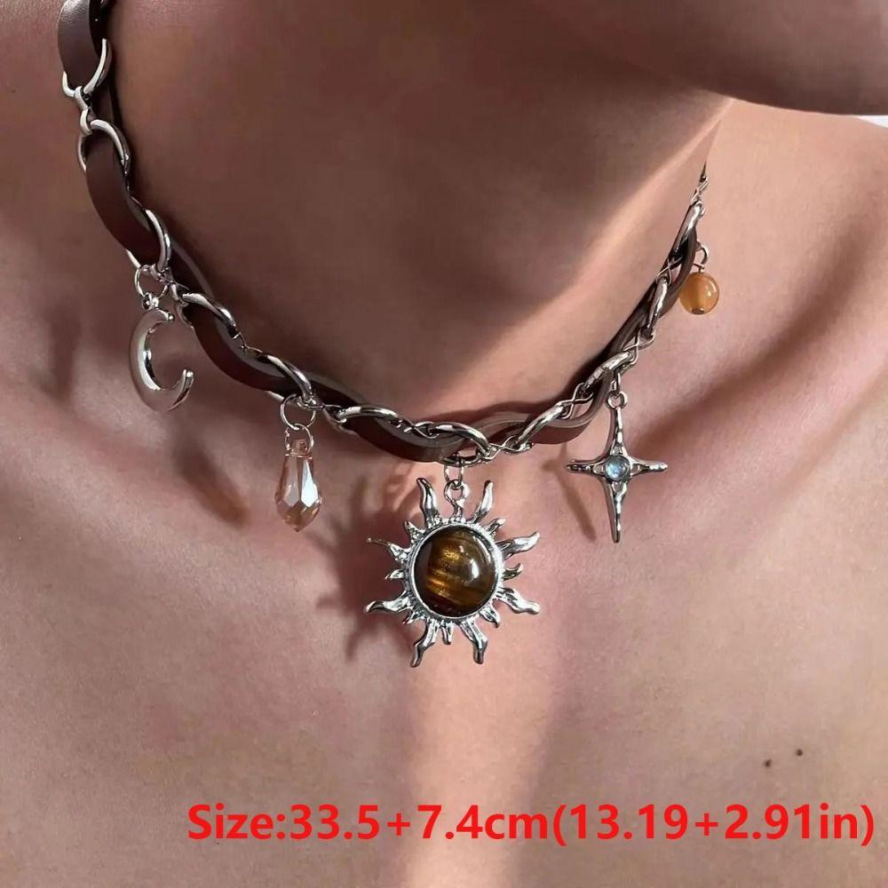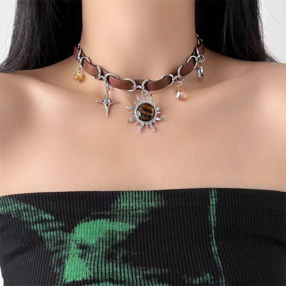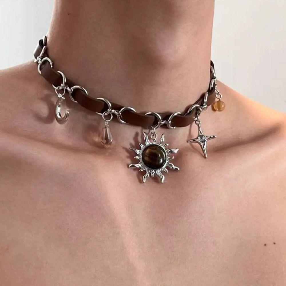 Готическая цепочка на ключицу из кожи с подвеской в виде звезды и солнца, модное ожерелье для мужчин