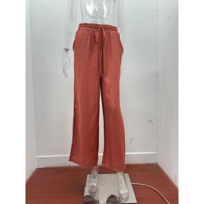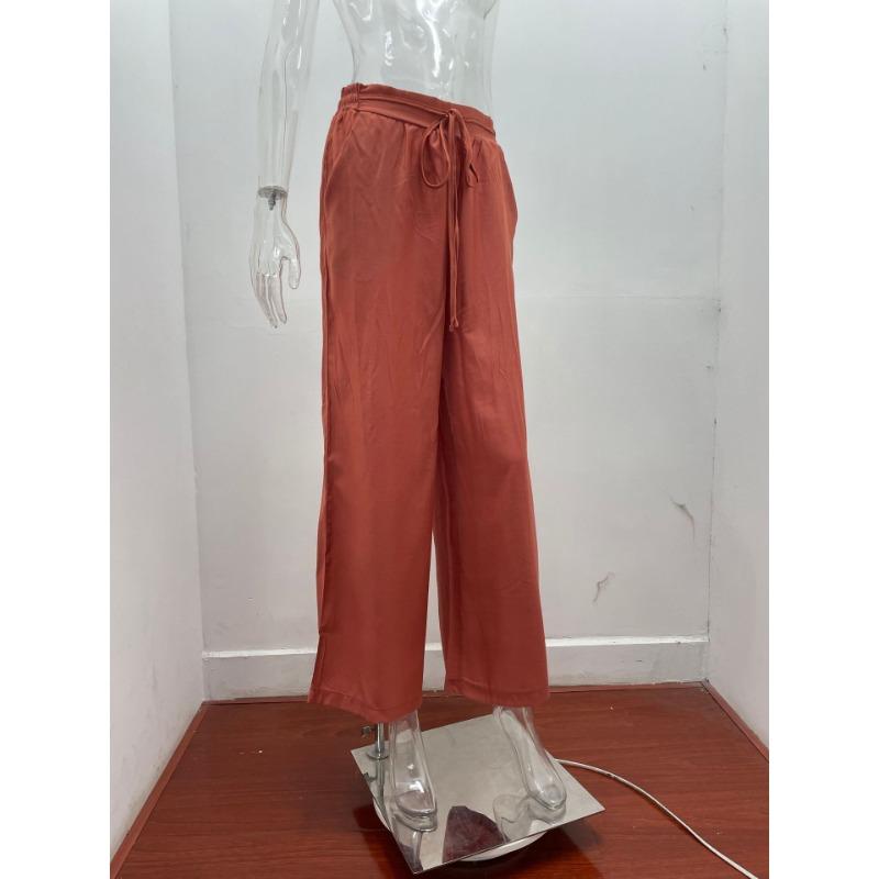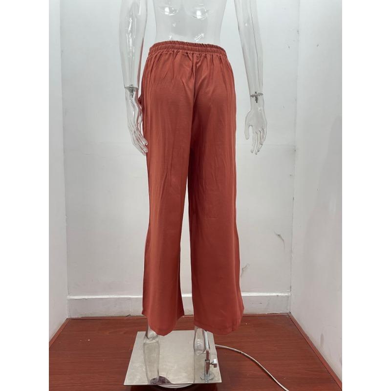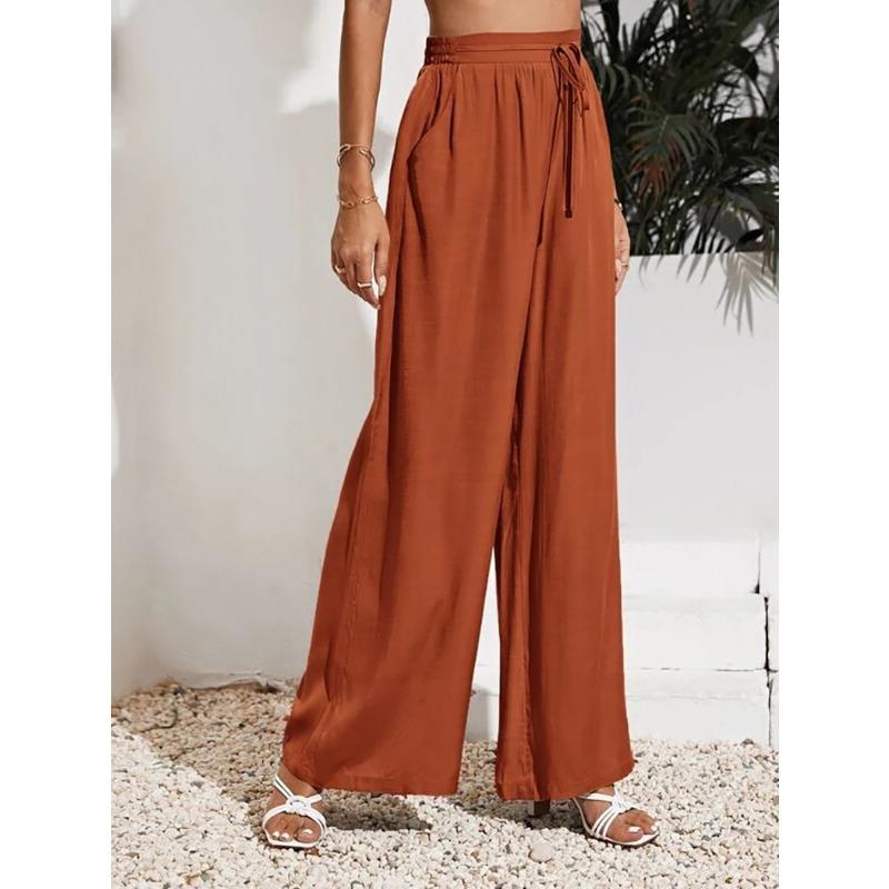 Летние женские повседневные брюки с высокой талией, однотонные, с эластичным поясом, свободные широкие брюки