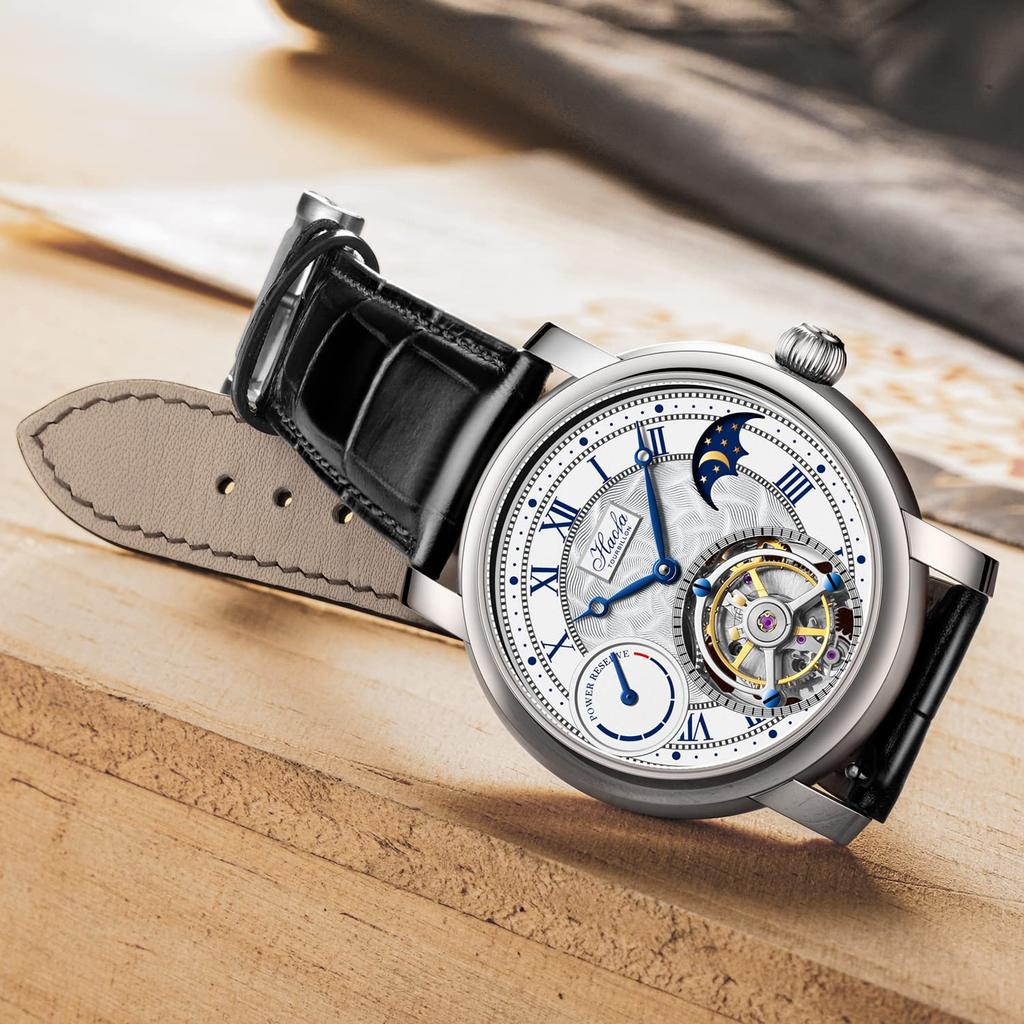 Часы HAOFA с турбийоном, механические, с ручным заводом, с дисплеем запаса хода, полым циферблатом, фазами Луны, стильным роскошным сапфировым стеклом, популярным водонепроницаемым подарком