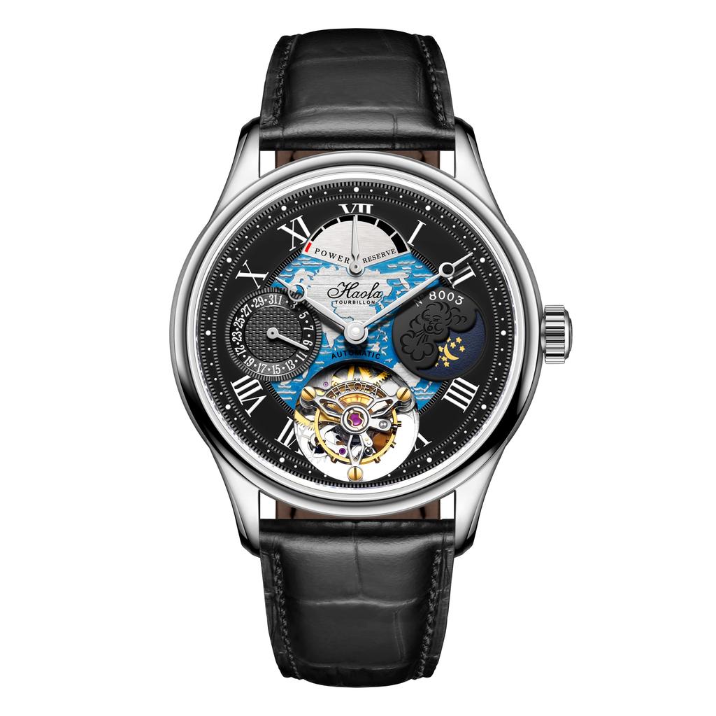 Часы HAOFA Tourbillon с механическим автоматическим заводом, дисплеем энергии, полым циферблатом, фазой Луны, стильным календарем, роскошным сапфировым стеклом, популярным водонепроницаемым подарком