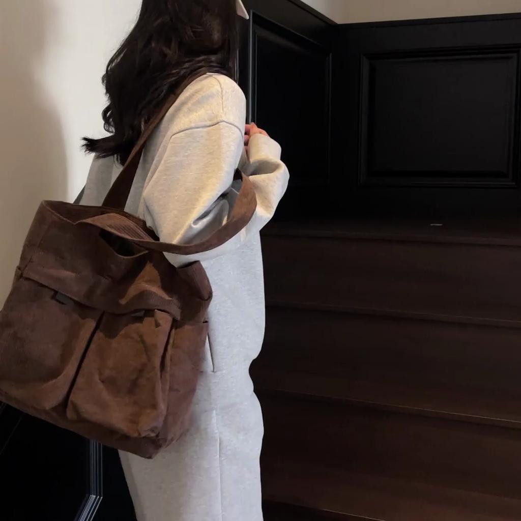 Большая вместительная вельветовая сумка для женщин, сумка через плечо для поездок на работу, сумка-тоут с несколькими карманами — купить товар онлайн с бесплатной доставкой по всему миру!