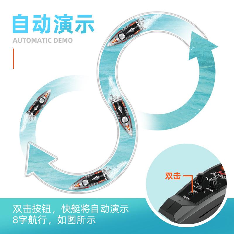 Характеристики: Защита от столкновений с резиновой головкой, точная водонепроницаемость, бесщеточный двигатель с водяным охлаждением, сброс при опрокидывании одной кнопкой, автоматическая демонстрация из 8 слов, дальность управления более 200 м, уведомление о низком заряде батареи, защита от столкновений, ночные навигационные огни, предупреждение о превышении расстояния дистанционного управления.
