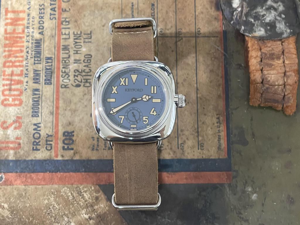 Мы объединили корпус часов в форме подушечки, который использовался различными часовыми брендами с 1920-х годов, с уникальным и практичным циферблатом «California Dial».. Мы перепечатали дымчато-синий циферблат с узором smoseco, циферблат 1930-х годов.. Название - «Clifornia Cushion watch». Это переиздание часов, которые были любимы на протяжении многих лет.. Это продукт с двойным названием «MRMW» и «KEYFORD».. Индексы 10, 11, 1 и 2 — римские цифры, 4, 5, 7 и 8 — арабские цифры, 3, 6 и 9 — штриховые индексы, а 12 часов — треугольная часовая метка, что является типичным дизайном «калифорнийского циферблата».. Среди необычных циферблатов есть чрезвычайно популярные модели, в основном старинные.. В Японии его называют «Уникальным циферблатом», а во всем мире он известен как «Калифорнийский циферблат». Это не просто уникальный циферблат.. Это не просто уникальный дизайн, это дизайн, который популярен как среди мужчин, так и среди женщин и используется многими известными брендами и марками одежды.. У него не только был превосходный дизайн, но и превосходная видимость.. история 193