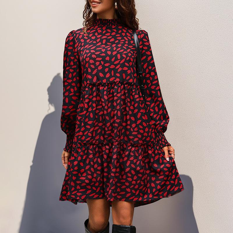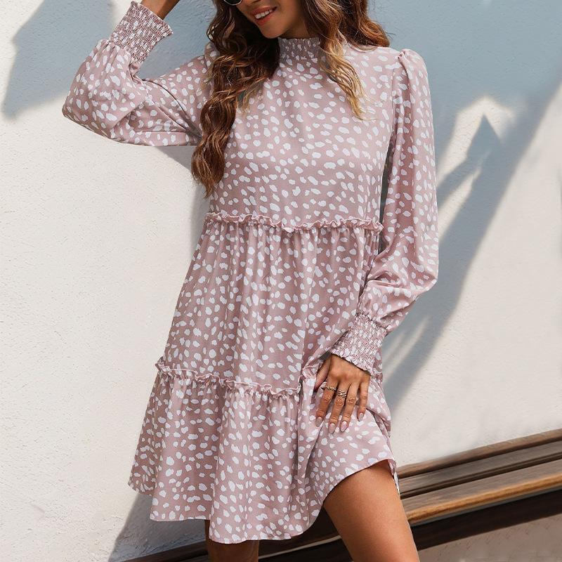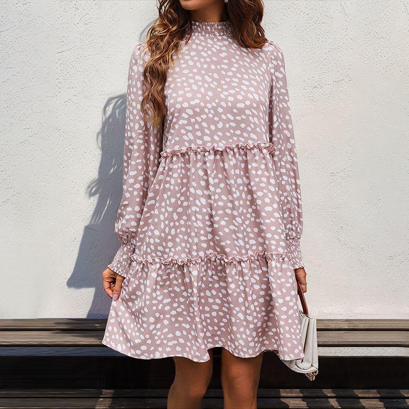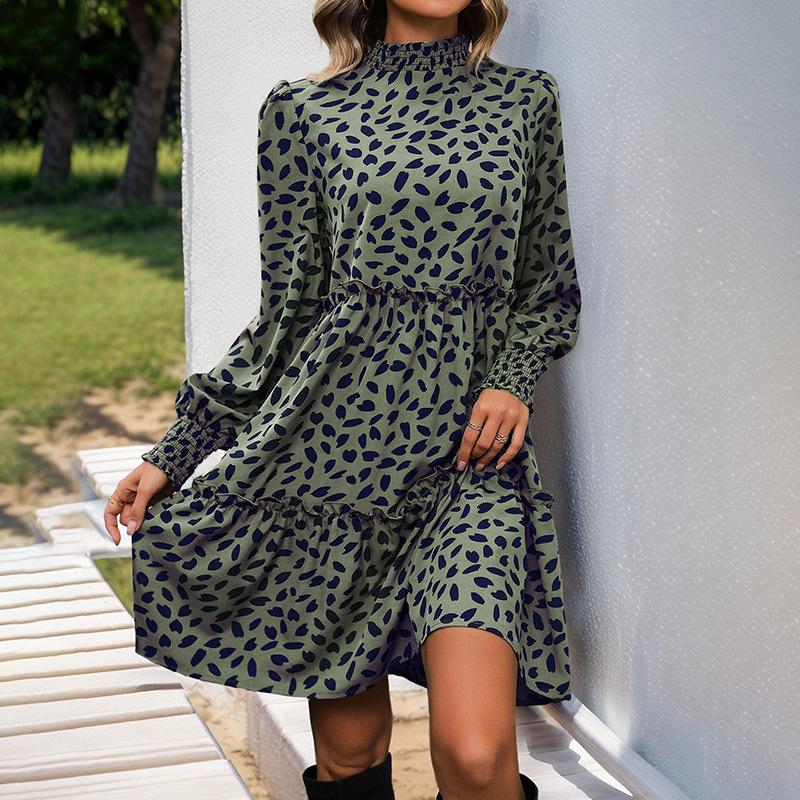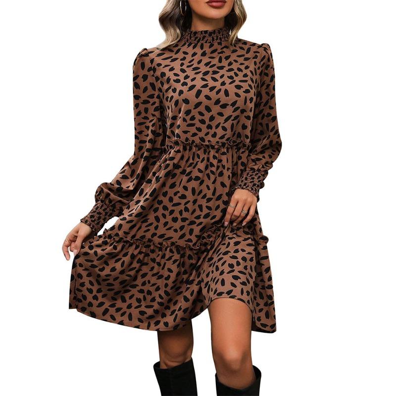 Весенне-осенние женские платья с леопардовым принтом и длинными рукавами