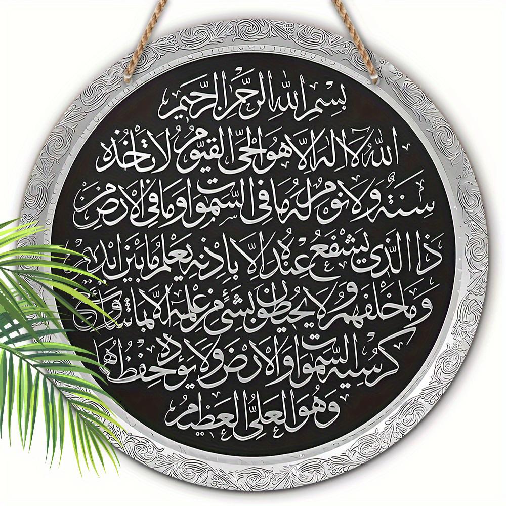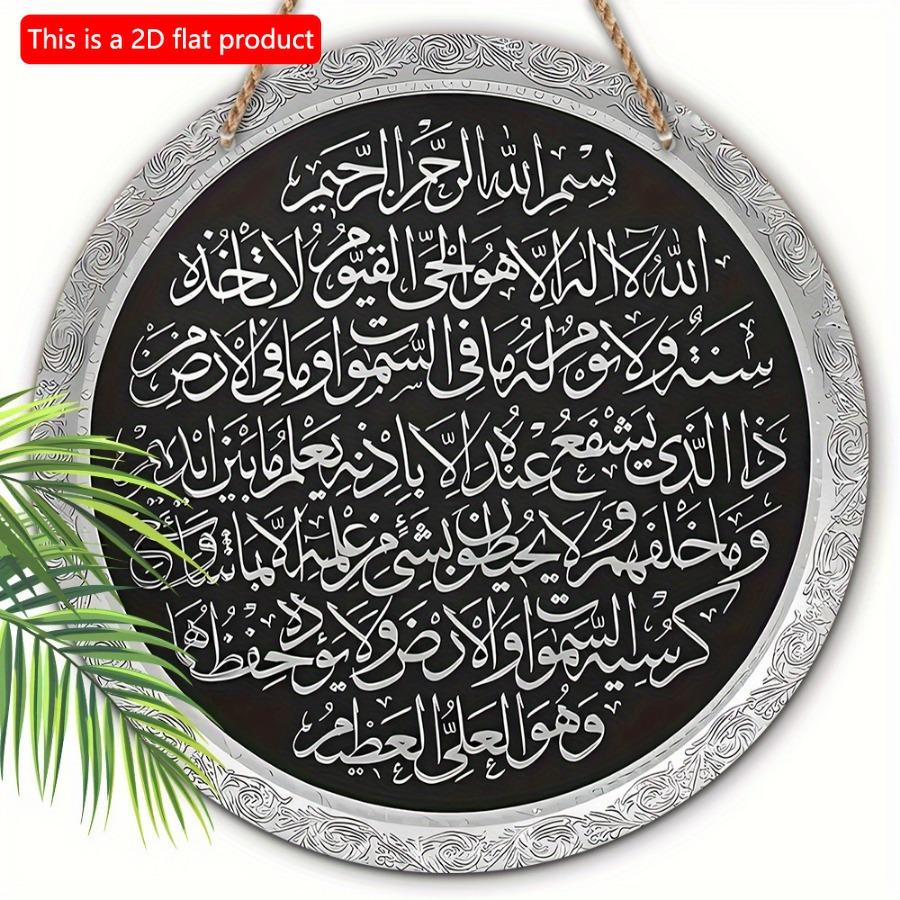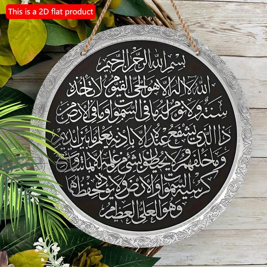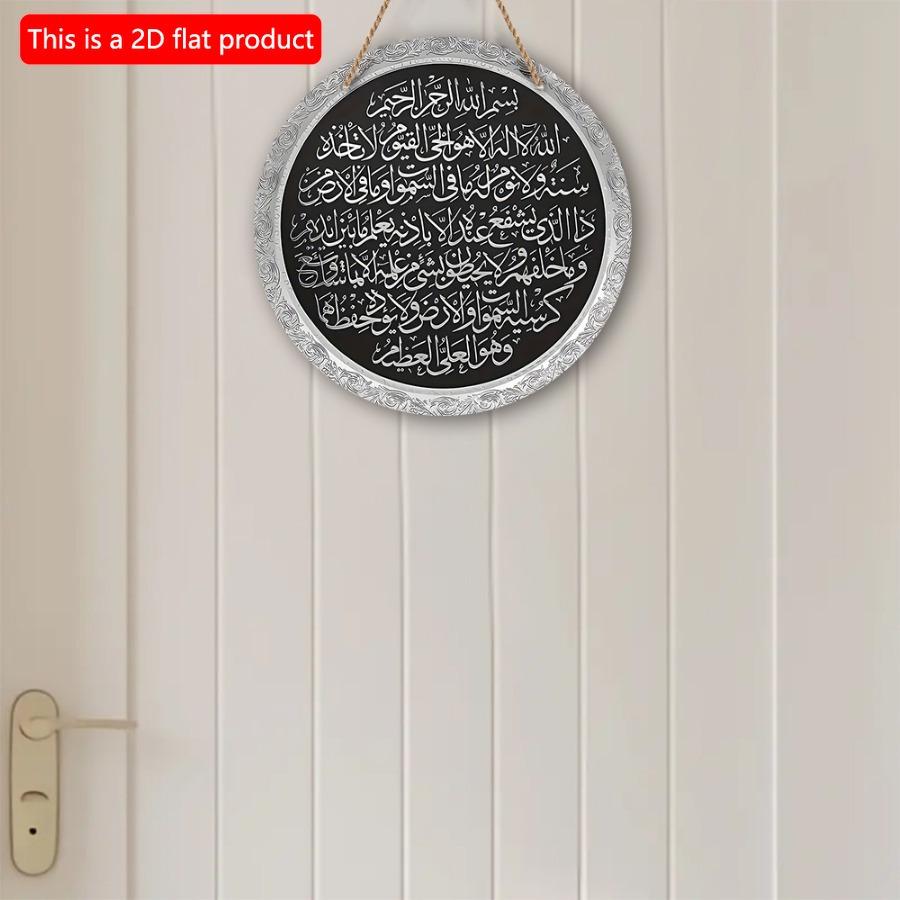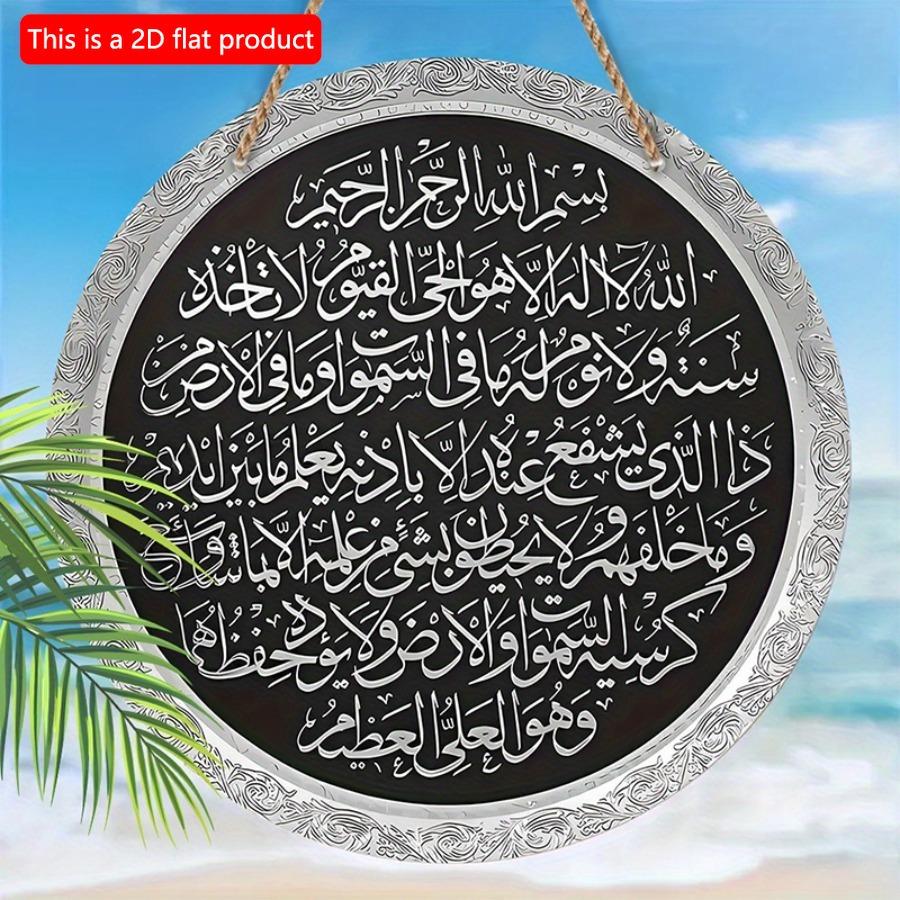 1 шт. 2d плоский подвесной круглый деревянный знак - 20 см Аятуль Курси настенная декоративная табличка, подарок для поклонников Мухаммеда, исламская арабская каллиграфия для пещеры влюбленных