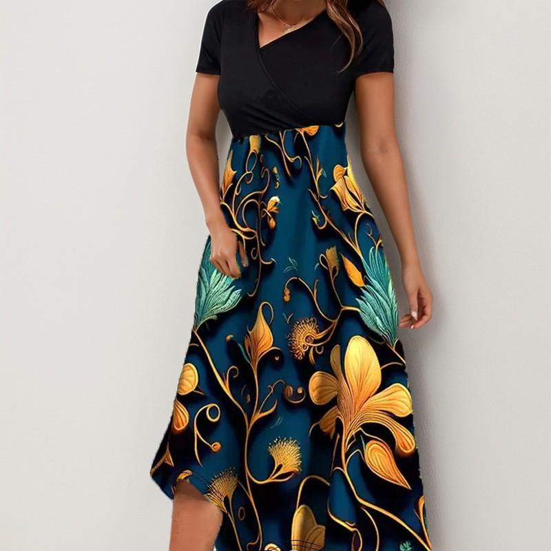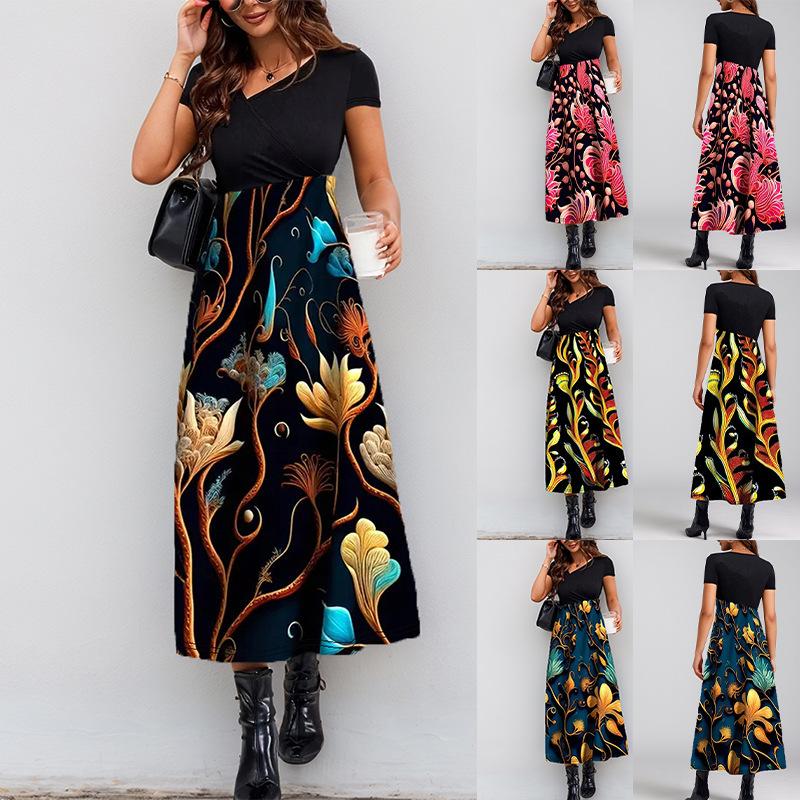 Новый 3D цветочный принт без рукавов жилет длинный женский короткий рукав платье летние длинные свободные платья