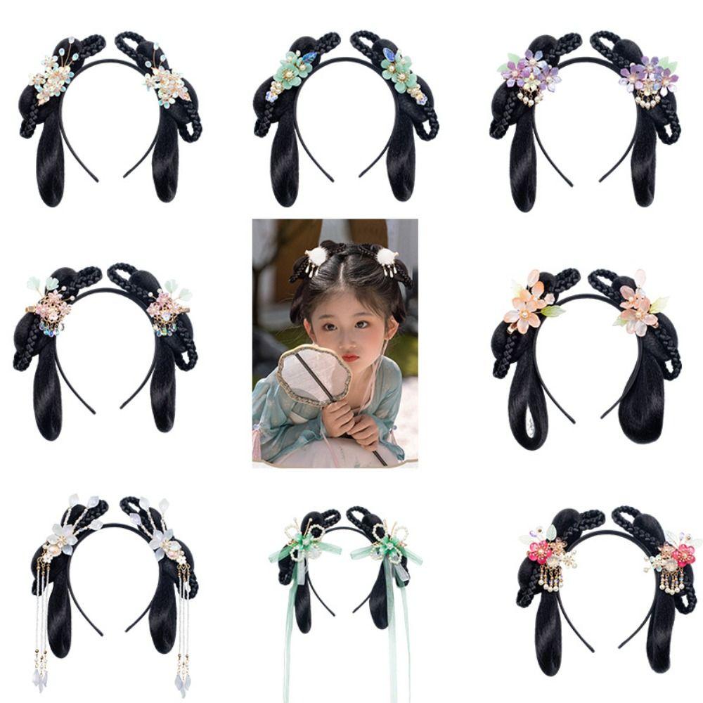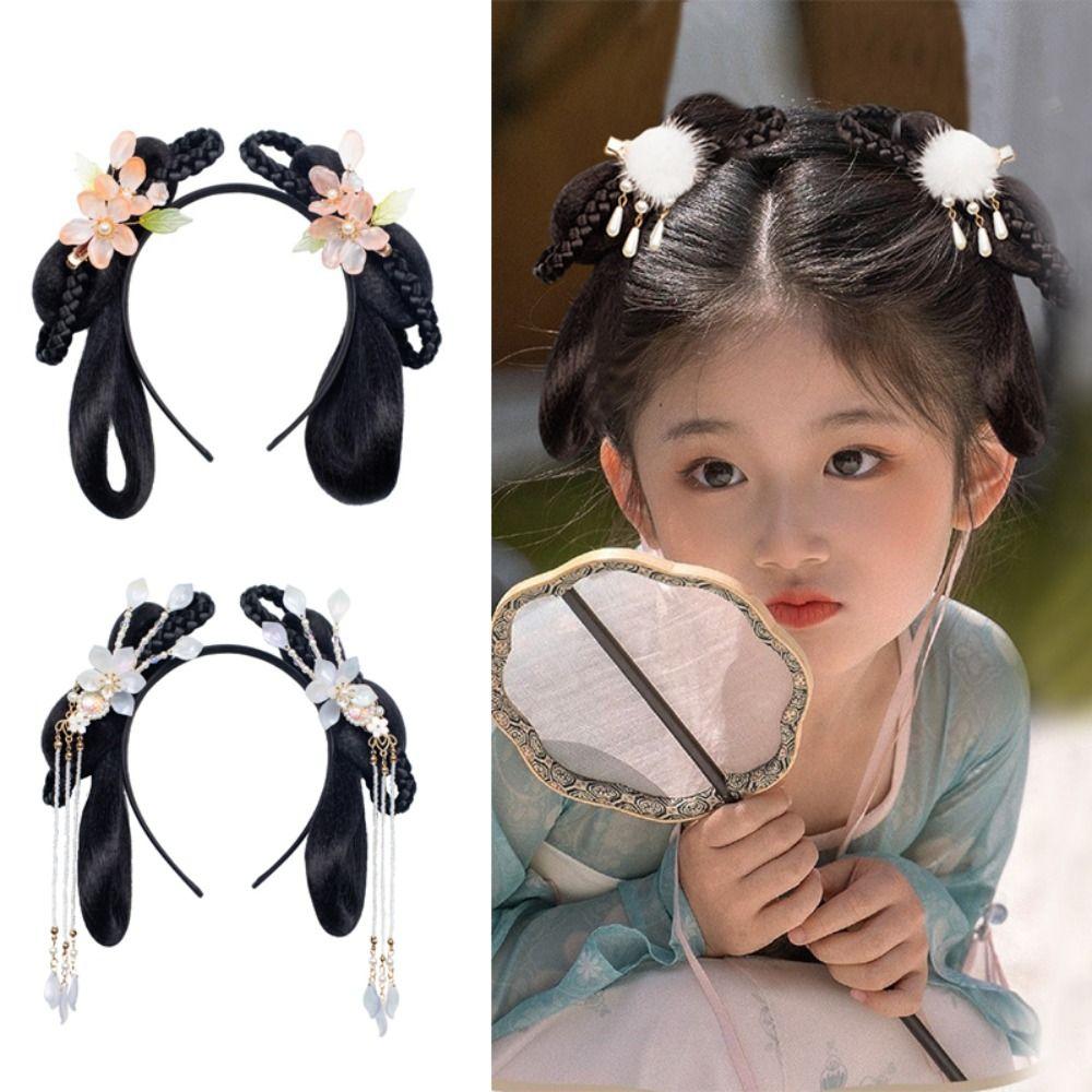 Props Kids Hanfu Flower Headband Chinese Style Hair Princess Hair Band Synthetic Braided Headbands