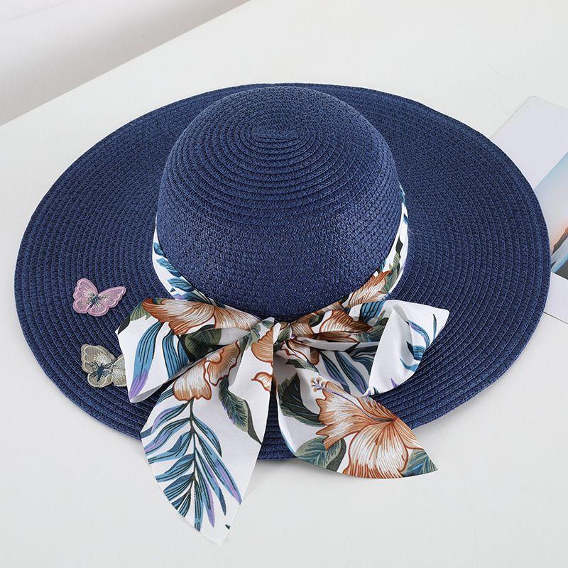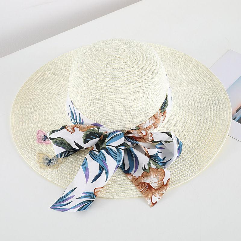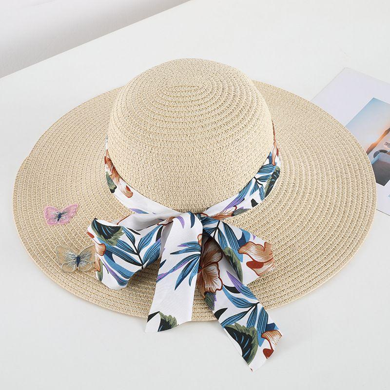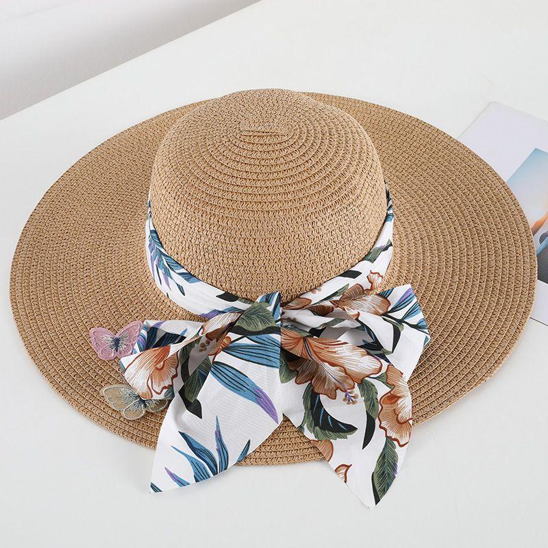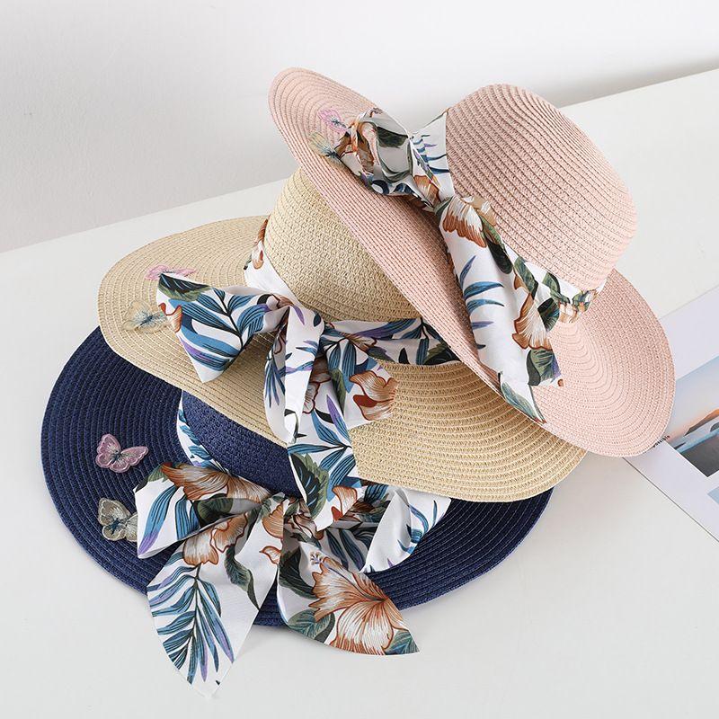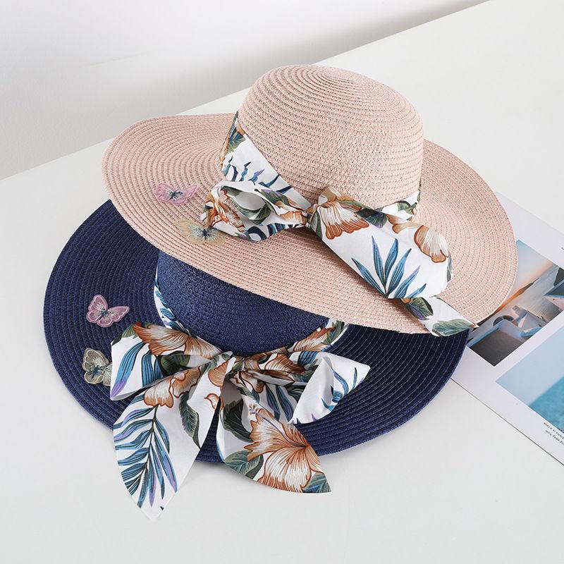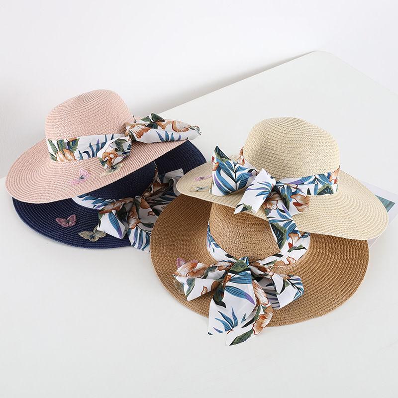 Соломенная шляпа в стиле бохо с защитой от солнца для женщин, летняя пляжная шляпа с большими полями в форме банта